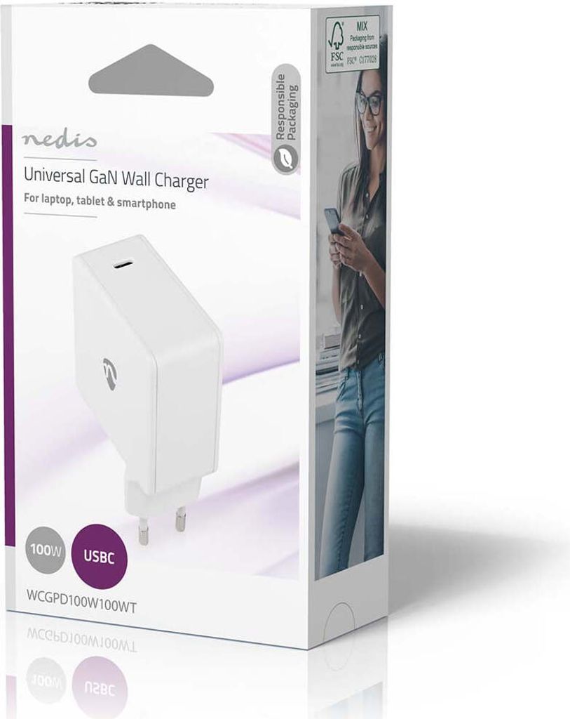 NEDIS 45W GaN USB-C Netzteil - Kompakter Stecker Für Superschnelles Laden