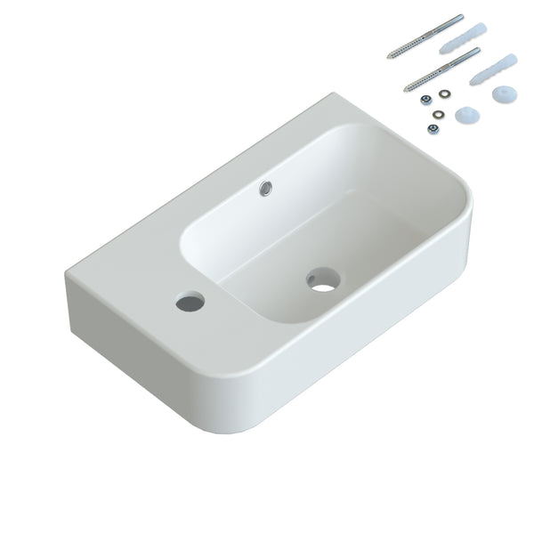 Aus hochwertiger Keramik - super pflegeleicht und langlebig. Einmal sauber gemacht, strahlt es wie neu. Das Hahnloch ist rechts, ergonomisch genau da, wo du es brauchst.