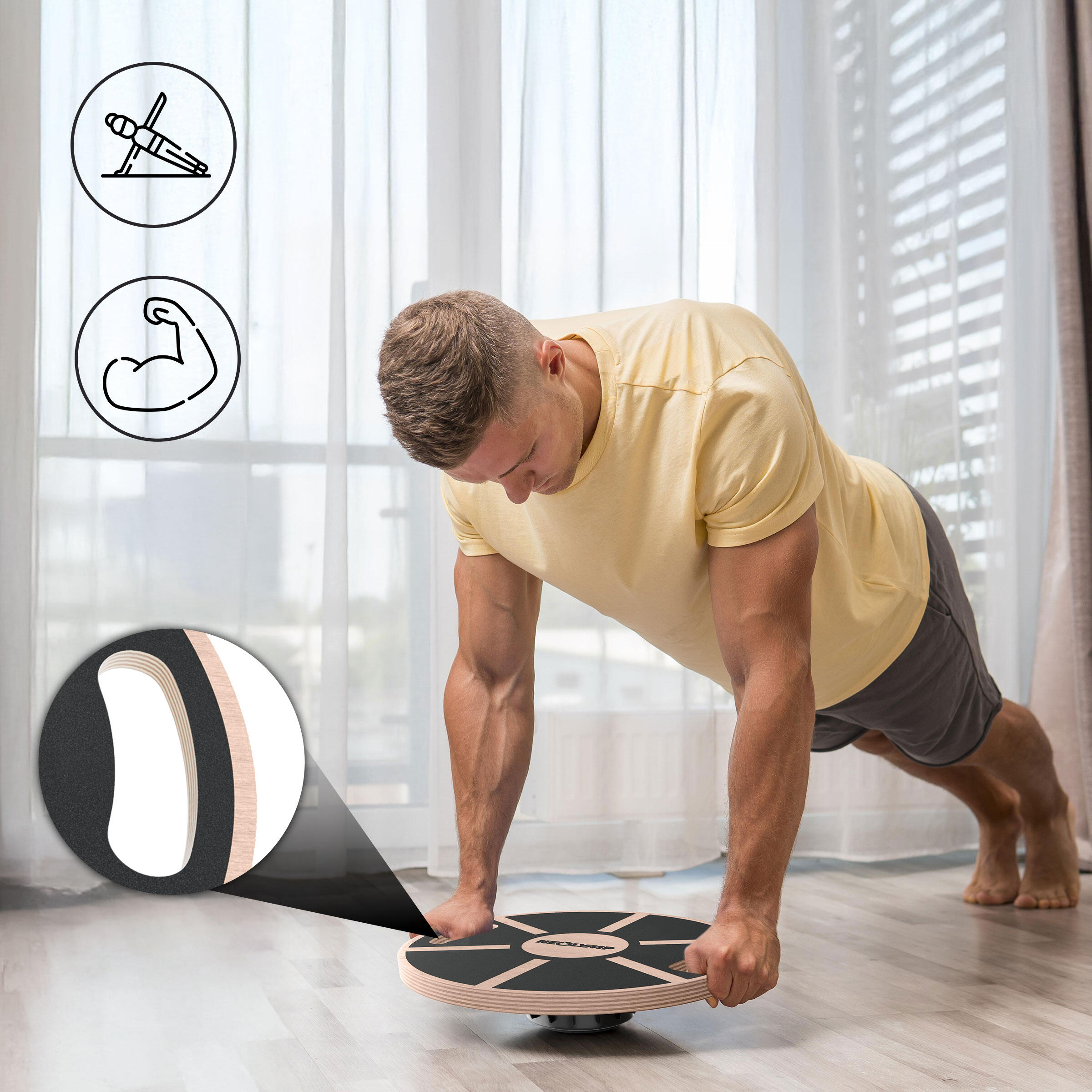 Wow, dieses Balance Board von NEOLYMP bringt dein Training richtig in Schwung! Stell dir vor: Du stehst auf dem robusten Birkenholz-Brett und forderst deine Balance heraus - das macht nicht nur mega Spaß, sondern stärkt auch deine Core-Muskulatur wie verrückt!