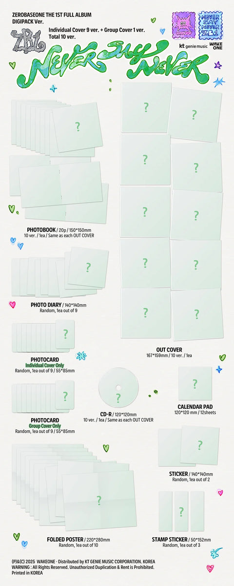 Das offizielle ZEROBASEONE \NEVER SAY NEVER\ 1st Album ist ein Muss für alle ZB1-Fans! Enthält den coolen Linsenraster-Schlüsselanhänger, der je nach Blickwinkel sein Motiv verändert - einfach faszinierend! Im Set enthalten: 9 wunderschöne Fotokarten deiner Lieblingsmitglieder, ein QR-Album für digitalen Content und ein Guide. Achtung: Dieses Album enthält keine physische CD, dafür aber umso mehr Sammelspaß! Die Tracklist mit 10 Songs inklusive Titeltracks \ICONIK\ und \SLAM DUNK\ verspricht musikalischen Genuss. Alle Produkte werden originalversiegelt geliefert mit Tracking und sicherer Verpackung. Trägt zur HANTEO & GAON Chart bei - also perfect für alle, die ihre Lieblingsgruppe unterstützen wollen. Startet am 2. September 2025 - sei dabei!