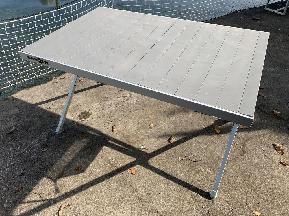 Auf- und Abbau geht ratzfatz. Der praktische Tragegriff und die Netzablage machen den Tisch noch praktischer. Mit 30kg Belastung hält er alles aus, was du draufpackst.