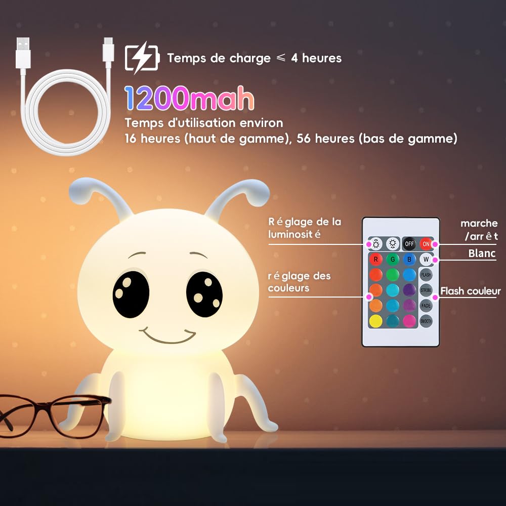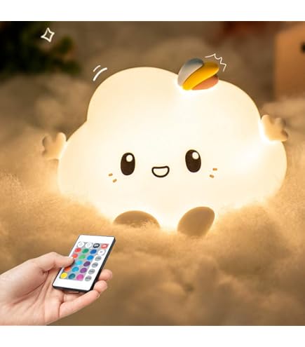NICE POINT Nachtlicht Kinder - Dimmbar 9 Farben Mit Fernbedienung & Timer USB-aufladbar
