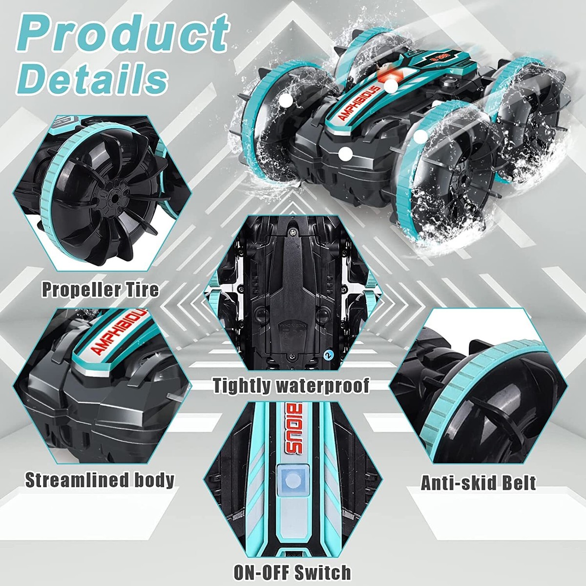 NIKYPJ Amphibien RC Auto - Ferngesteuertes Auto Für Land & Wasser 360° Rollen