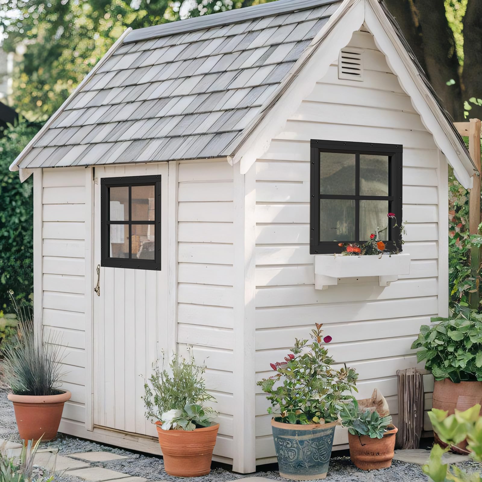 Mehr Licht im Gartenhaus! Diese beiden praktischen Schuppenfenster aus robuster Aluminiumlegierung mit gehärtetem Glas bringen Helligkeit in deinen Schuppen, deine Garage oder dein Spielhaus. Mit den Maßen 30,5x30,5cm sind sie perfekt für die meisten Standard-Gartenhäuser. Das minimalistische Design in Schwarz fügt sich dezent in jeden Baustil ein. Besonders praktisch: Die Fenster sind komplett mit Montagezubehör und detaillierter Anleitung ausgestattet - auch Heimwerker ohne Vorkenntnisse schaffen die Installation problemlos. Das gehärtete Glas ist besonders bruchsicher und die Aluminiumrahmen sind korrosionsgeschützt für lange Haltbarkeit bei jedem Wetter. Mehr natürliches Licht bedeutet bessere Übersicht und eine angenehmere Atmosphäre in deinem Gartenhaus. Einfach die mitgelieferten Edelstahlschrauben verwenden und schon strahlt dein Schuppen in neuem Licht!