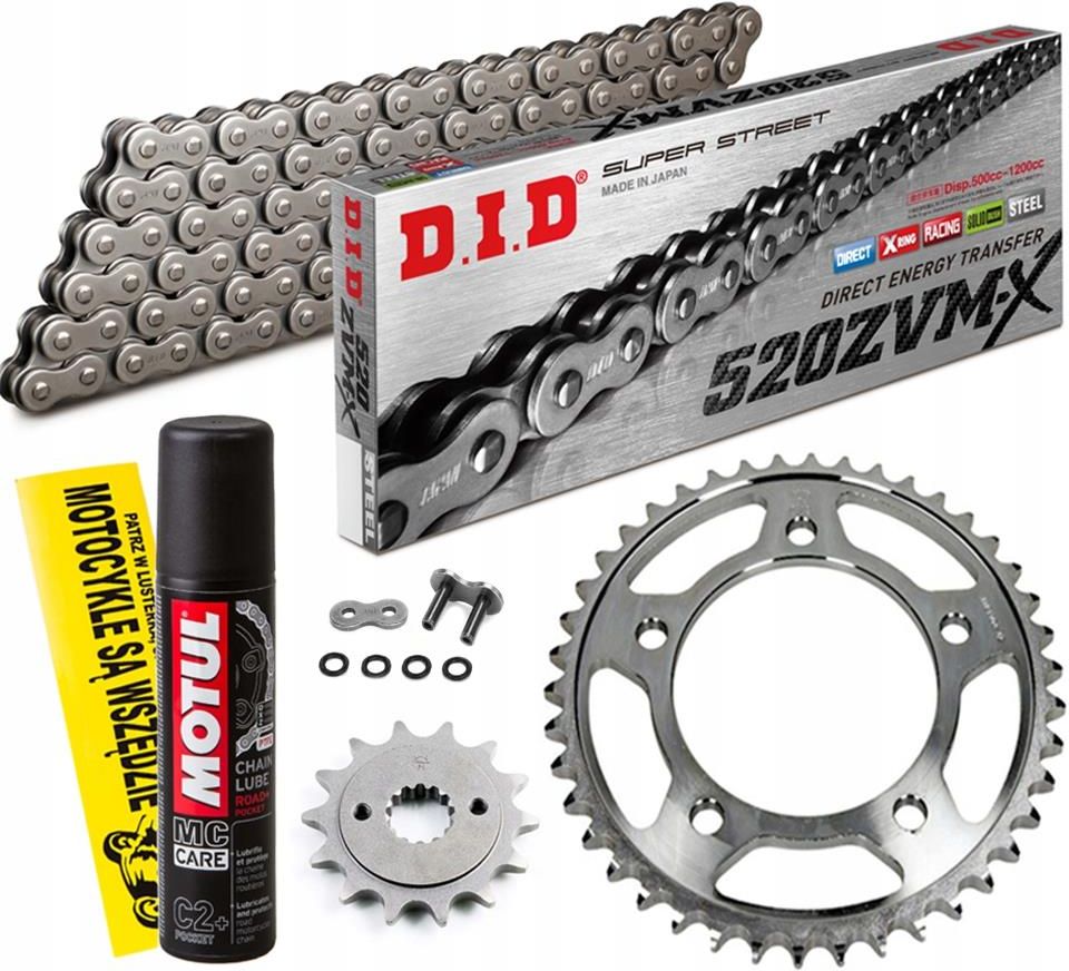 Perfektes Kettenkit für deine Honda CA 125 Rebel JC24 aus den Baujahren 1995-1996! Der Komplettsatz besteht aus hochwertigen DID 520 NZ Ketten und passt genau wie das Original. Mit dabei: eine robuste Kette mit 112 Gliedern, ein Kettenritzel mit 13 Zähnen und ein Kettenrad mit 39 Zähnen - alles aus langlebigem Stahl gefertigt. Das Übersetzungsverhältnis entspricht exakt den Vorgaben von Honda. Die Kette wird übrigens offen geliefert, inklusive praktischem Kettenschloss für die einfache Montage. Ob du deine Kette wechseln musst oder dein Motorrad eine Generalüberholung braucht - mit diesem Set bist du bestens ausgestattet! Die Qualität der Komponenten überzeugt durch Langlebigkeit und perfekte Passform. Einfach einbauen und wieder Spaß auf der Straße haben!