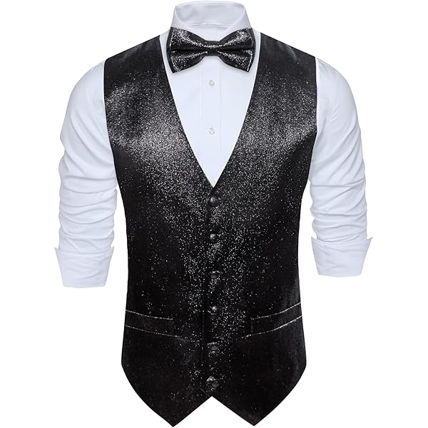 NaLatia Silvester Weste Herren Set - Glitzer Weste Mit Fliege