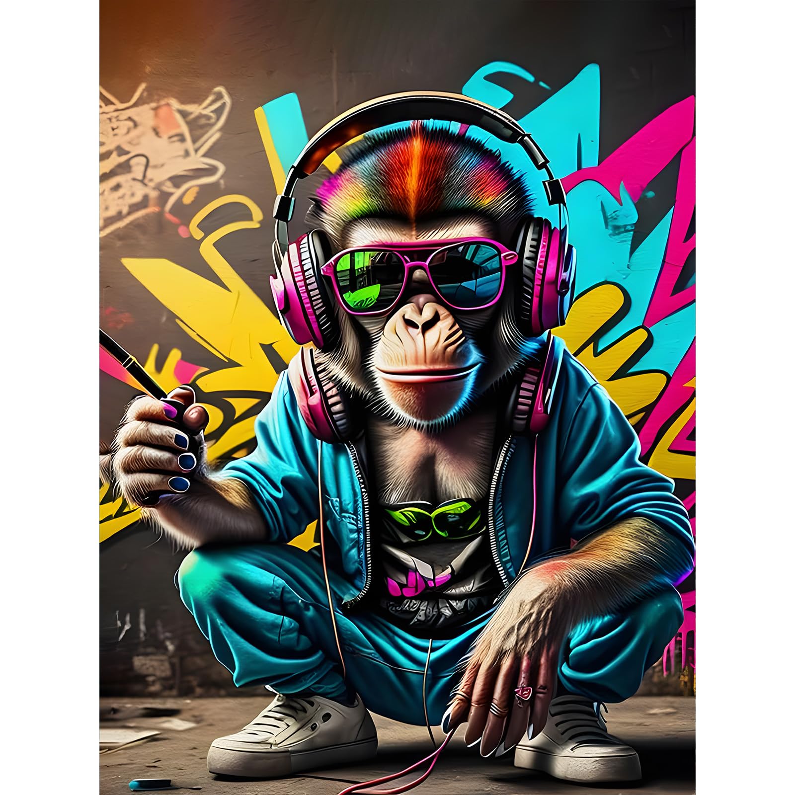 KEYIFA Malen Nach Zahlen Erwachsene - DJ Affe Mit Kopfhörern 30x40cm DIY Gemälde