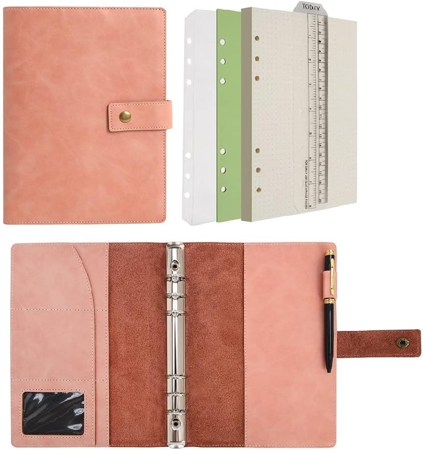 A5 Leder Notizbuch Nachfüllbar - 6-Ring Ordner Mit 120 Seiten Liniert & Tasche