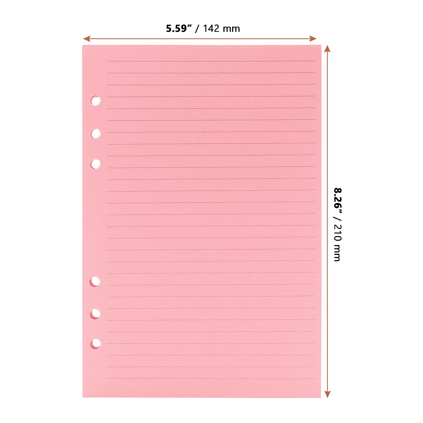 Peowuieu A5 Nachfüllblätter - 6-Loch Gelocht & Liniert, 5 Farben Mix