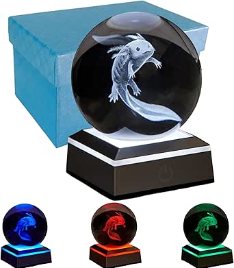 Axolotl Nachtlicht 3D Crystal Ball - 16 Farben Mit Fernbedienung 8cm