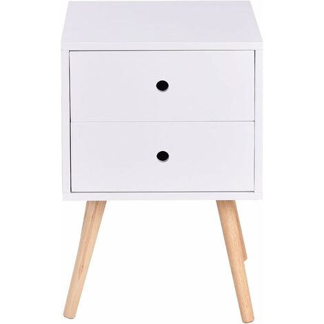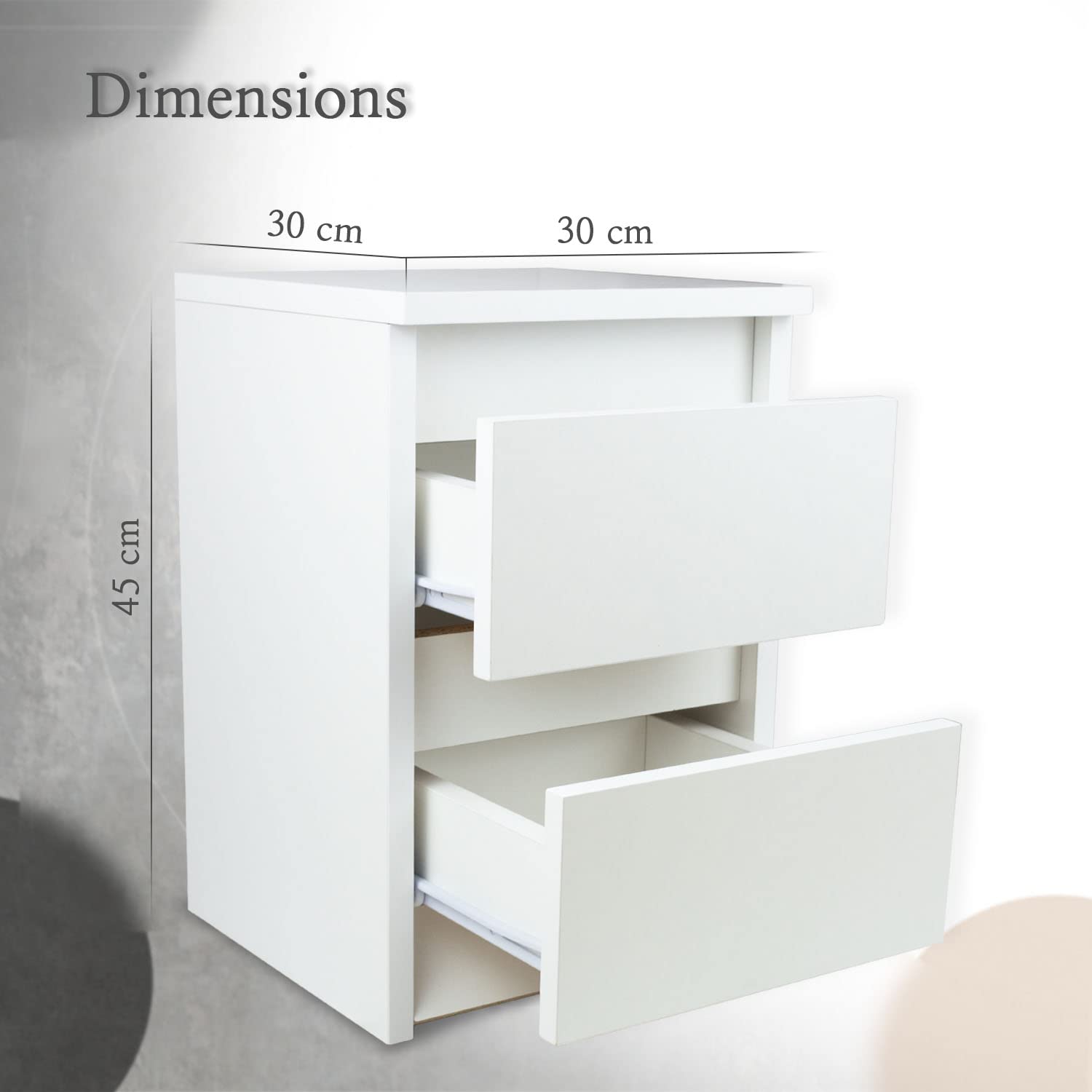 ZOLTA Nachttisch Weiß - 2 Schubladen, Grifflos, 41x32x29cm Für Schlafzimmer