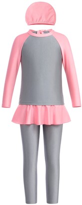 NadamuSun 3-tlg Mädchen Burkini Set - Langarm Badeanzug Mit UV Schutz