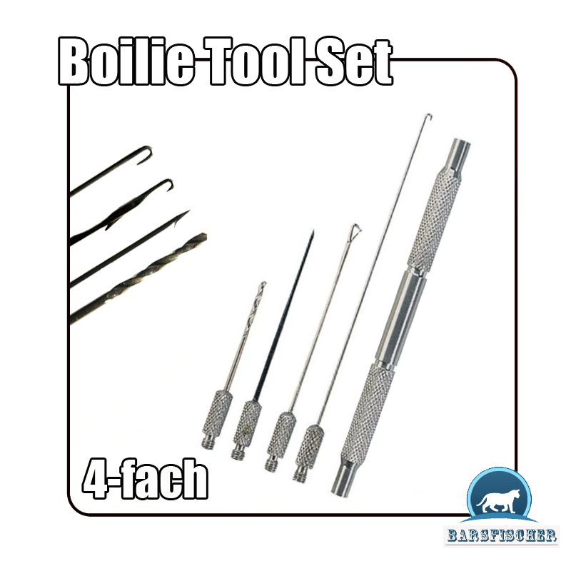 Alles was du fürs Boilie-Angeln brauchst! Dieses 4-teilige Set enthält zwei Boilie-Haken, einen Boilie-Bohrer und eine Boilie-Nadel. Alle mit rutschfesten Griffen für sicheren Halt. Perfekt zum Aufziehen von Boilies und anderen Ködern. Macht das Anbieten von Ködern so viel einfacher. Ideal für Karpfenangler die Wert auf effektive Präsentation legen. Einfach zu handhaben und super praktisch am Wasser. Ein Must-have für jeden ambitionierten Angler!