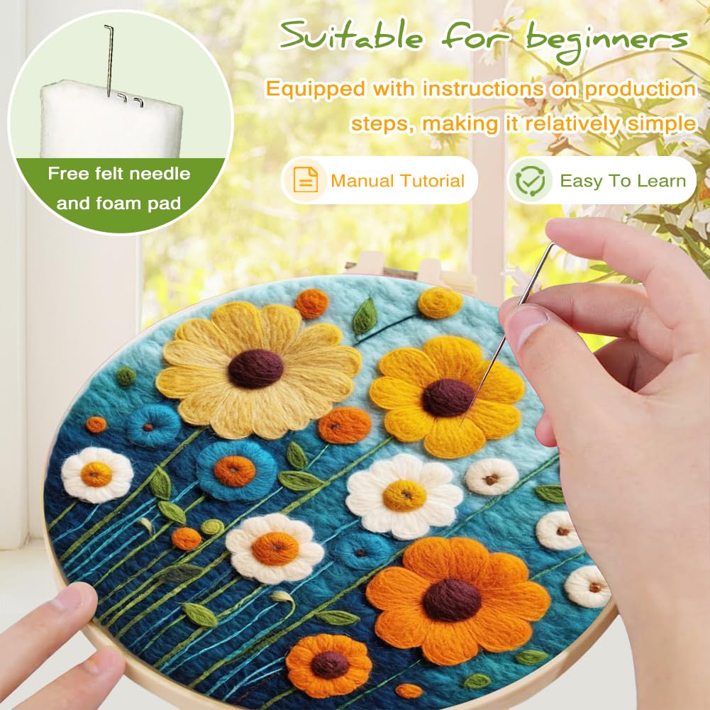 BUOKKON Nadelfilz-Pad 20x25cm - Naturwolle Filzmatte Mit 3 Nadeln