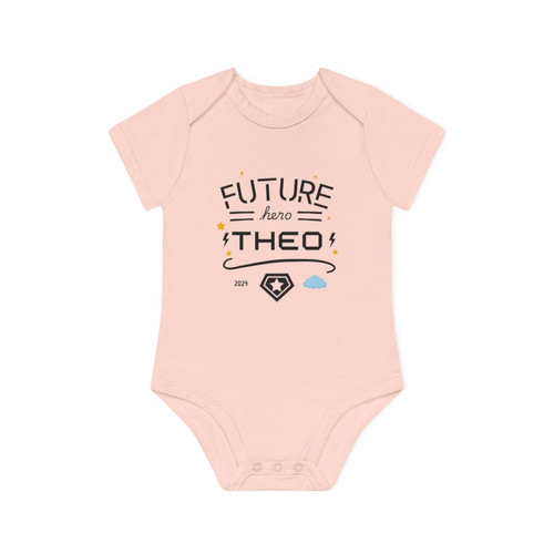 Süßer geht's nicht! Dieser personalisierte Baby-Strampler wird mit dem Wunschnamen deines Kindes und einem bezaubernden Blumen-Initial gestaltet. Ein ganz besonderes Kleidungsstück, das es so kein zweites Mal gibt! \\n\\nHergestellt aus 100% Bio-Baumwolle mit 200 g/m² Stoffstärke ist der Body besonders weich und schonend zur empfindlichen Babyhaut. Die nickelfreien Druckknöpfe an der Beinöffnung machen das An- und Ausziehen super einfach. \\n\\nErhältlich in zarten Pastelltönen und in Größen von 0-3 Monaten bis 18-24 Monaten - perfekt für jede Wachstumsphase. Der langlebige DTF-Druck bleibt auch nach häufigem Waschen farbintensiv. \\n\\nIdeales Geschenk zur Geburt, Taufe oder Babyparty. Auch perfekt, um eine Schwangerschaft zu verkünden oder als Überraschungsgeschenk für werdende Eltern. Ein Geschenk, das von Herzen kommt!