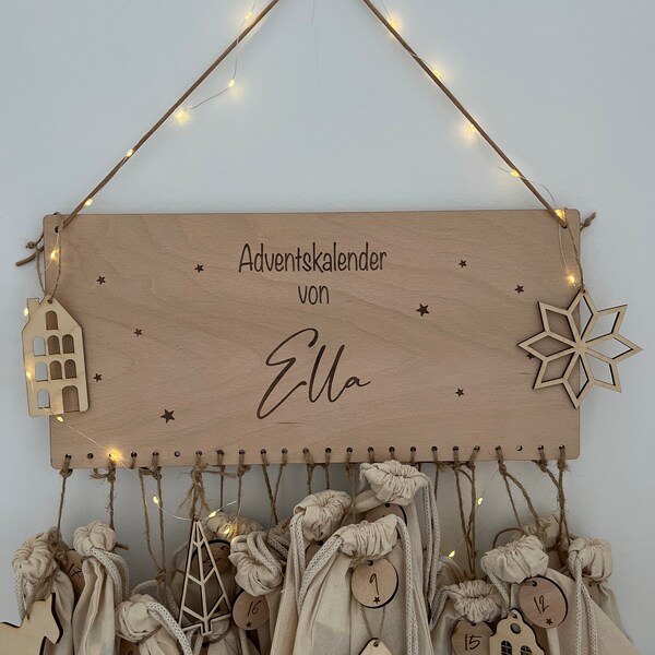 Personalisiert Adventskalender Mit Namen - Holzschild Mit Jutesäckchen