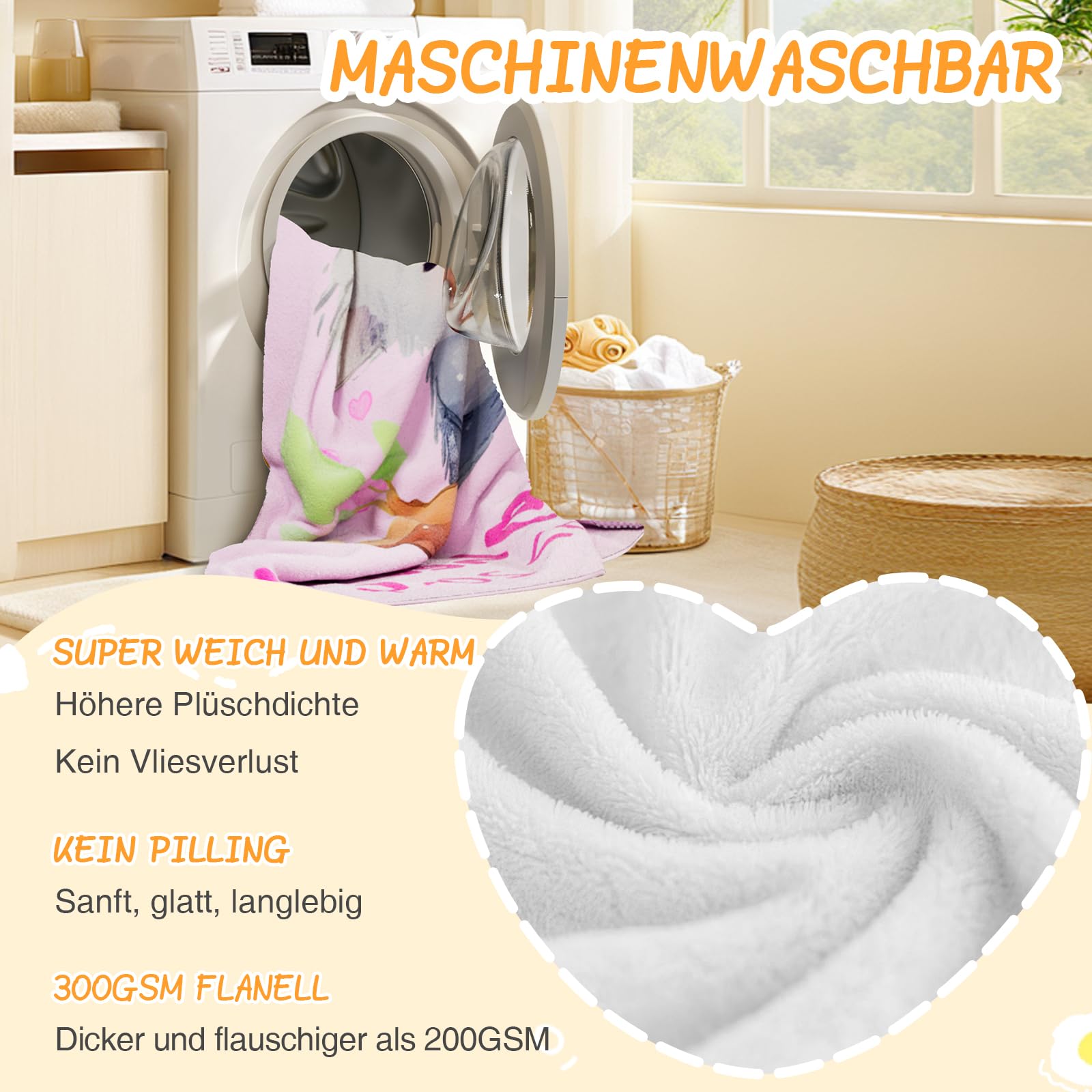 Das Material ist 100% Flanell mit 300 GSM - also richtig kuschelig und hautfreundlich. Maschinenwaschbar bei niedriger Temperatur, damit die Personalisierung lange schön bleibt. Perfekt als Schlafdecke, Krabbelunterlage oder einfach als kuscheliger Begleiter für unterwegs!