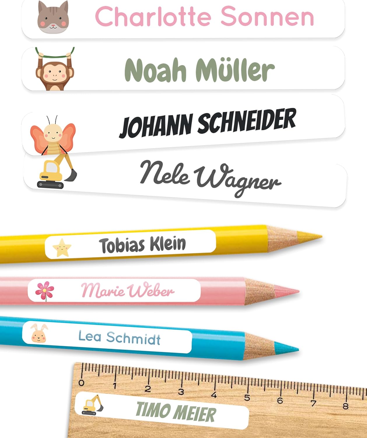 Namensaufkleber Kinder 60 Stück - Personalisierte Etiketten Waschmaschinenfest