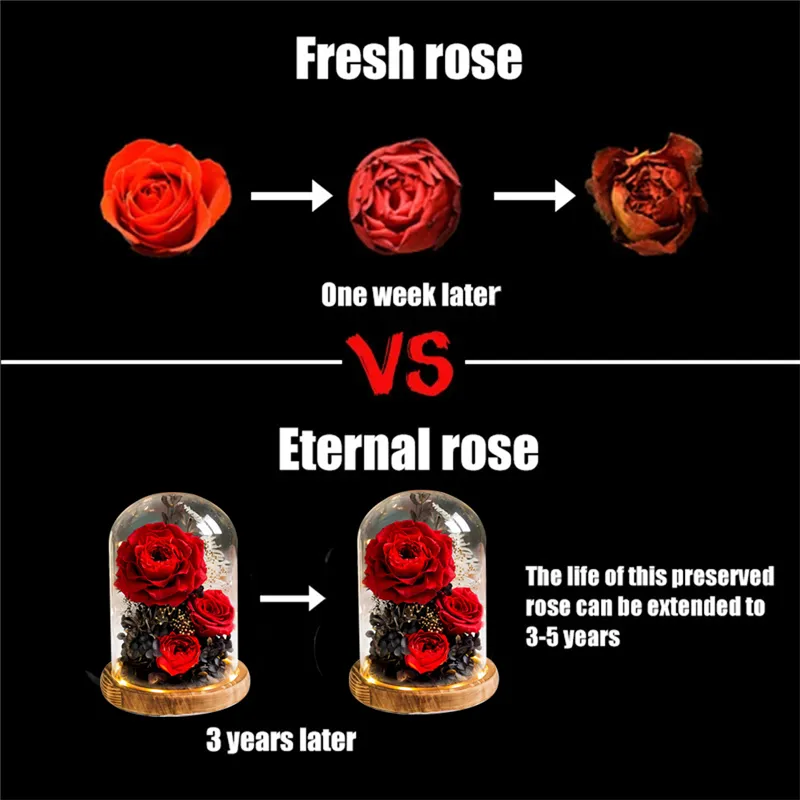 Romantik, die Jahre hält! Diese wunderschönen ewigen Rosen sind echte Naturrosen, speziell behandelt um 3-5 Jahre frisch auszusehen. Jeder Rosenkopf misst 4-5cm im Durchmesser - perfekt für Vasen oder Deko. Kein Gießen nötig, einfach an einen trockenen Ort ohne direkte Sonne stellen. Kommen in einer eleganten Box mit 8 Rosen - ideal als Geschenk für Valentine's Day, Geburtstage oder den Jahrestag. Viel länger haltbar als frische Blumen, aber genauso schön. Bring dauerhafte Eleganz in dein Zuhause oder verschenke ein unvergessliches Präsent!