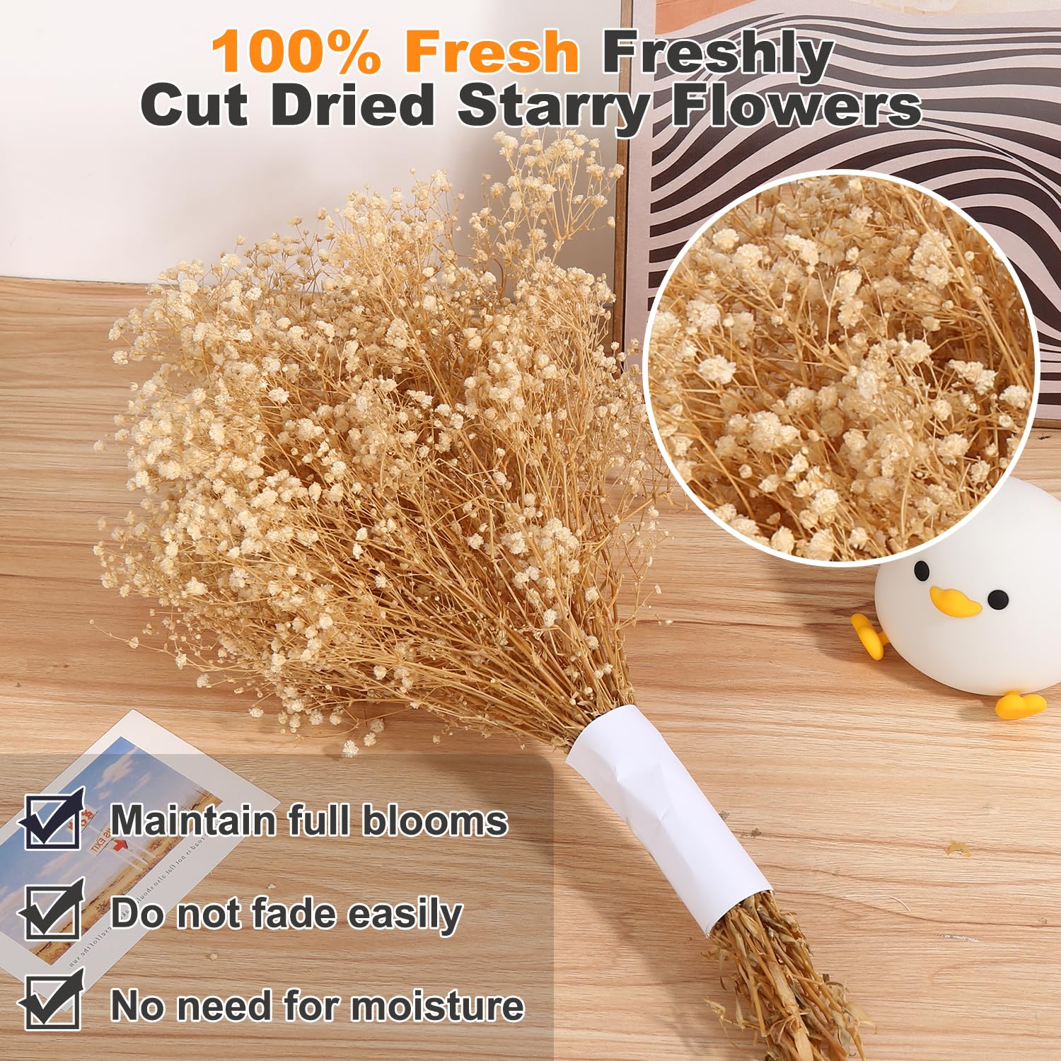 Traumhaft schönes getrocknetes Schleierkraut für deine Deko-Projekte! Dieser üppige Strauß mit über 3.500 Blüten und einer Länge von ca. 40-43 cm reicht locker für mindestens zwei große Vasen. Die reinweißen, zarten Blüten verleihen jedem Raum sofort eine romantische, luftige Atmosphäre.\n\nDas Besondere: Diese Schleierkräuter sind 100% natürlich und stammen von sorgfältig ausgewählten Hochlandfarmen. Durch spezielle Trocknungsverfahren behalten sie ihre weiche Textur und natürliche Schönheit - kein Vergleich zu billigen Kunstblumen! Die Qualität spürt man einfach.\n\nEinsatzmöglichkeiten gibt es unendlich viele: Als Tischdeko für Hochzeiten, als Blickfang im Wohnzimmer, für selbstgemachte Kränze, in Grußkarten, für Harz-Projekte oder als Requisite bei Fotoshootings. Auch für Büros, Restaurants oder Feiern ist dieses Schleierkraut perfekt geeignet.\n\nAls Geschenk ist es ebenfalls ideal: Weiße Schleierkräuter symbolisieren ewige Liebe und sind daher perfekt für Valentinstag, Muttertag, Hochzeiten, Jubiläen oder einfach als liebevolle Aufmerksamkeit. Kleiner Tipp: Einige Blüten können während des Transports natürlich abfallen - das ist normal und macht nichts! Die abgefallenen Blüten kannst du wunderbar für andere Dekorationen verwenden. In der praktischen Papierbox ankommen, sind sie bestens geschützt und ready für deine Kreativität!