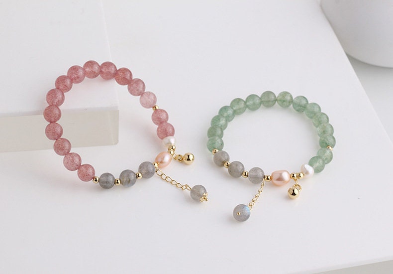 JIANGZ Erdbeerquarz Armband - Natürliches Chakra Armband Für Frauen & Männer