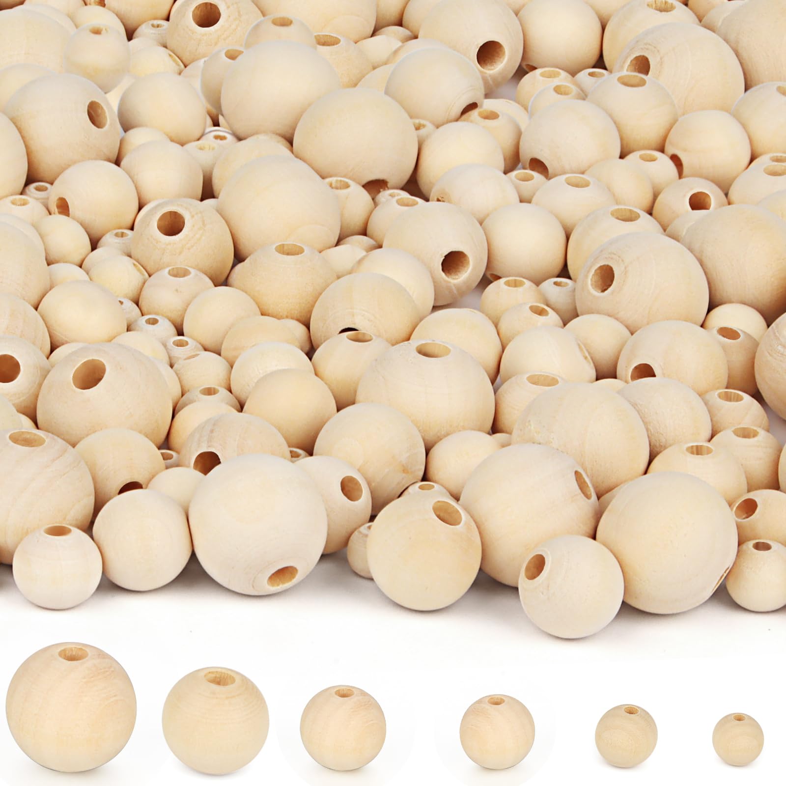1105 Stück Holzperlen Set - Natur Holzkugeln 6-20mm Mit Aufbewahrungsbox | Bastelperlen Für Schmuck & DIY
