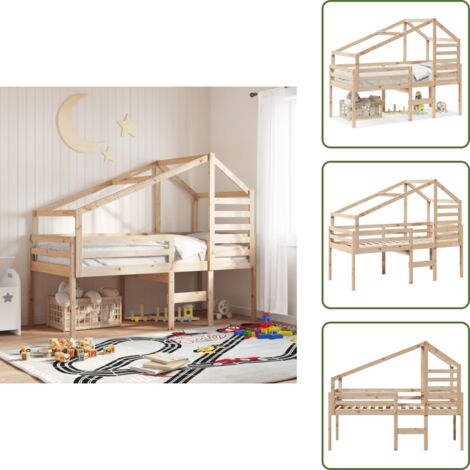 Interbeds Hochbett 200x90cm Natur - Massivholz Kinderbett Mit Lattenrost | Europäisches Kiefernholz