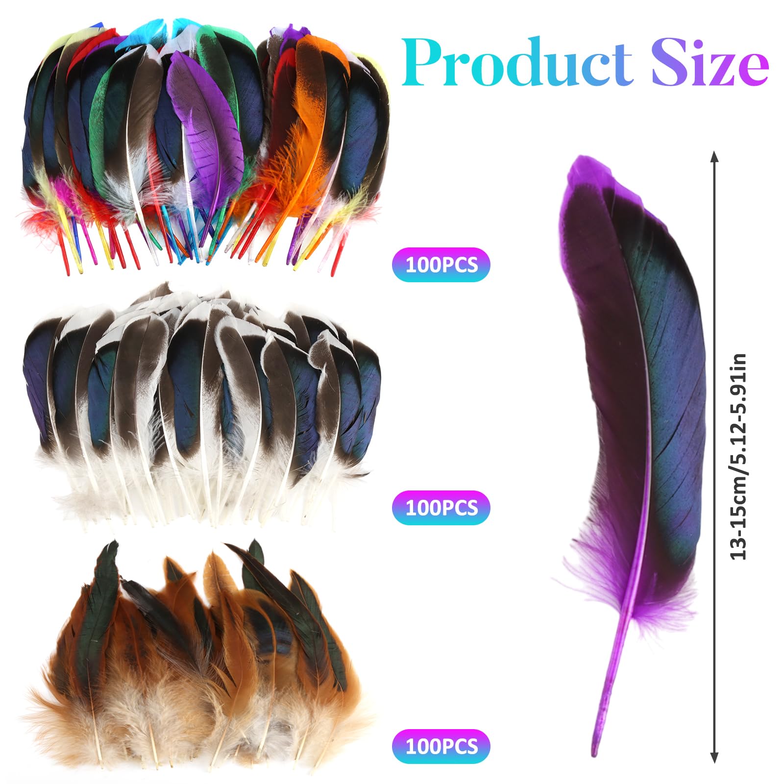 300 Stück Bunte Federn Bastelset - Naturfedern 8-12cm Für Deko Und Handarbeit