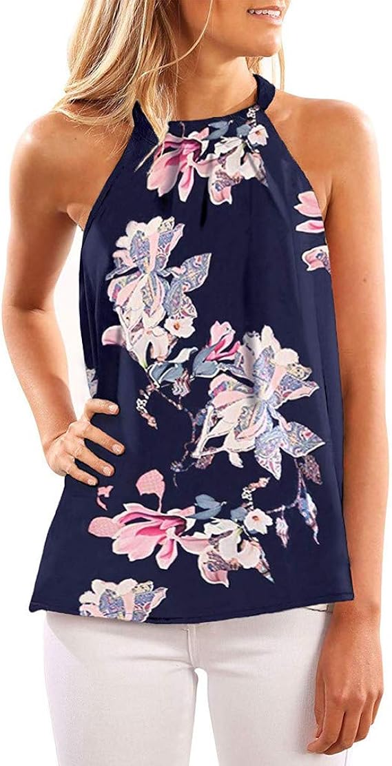 Damen Neckholder Top Ärmellos - Elegantes Chiffon Sommer Top Slim Fit