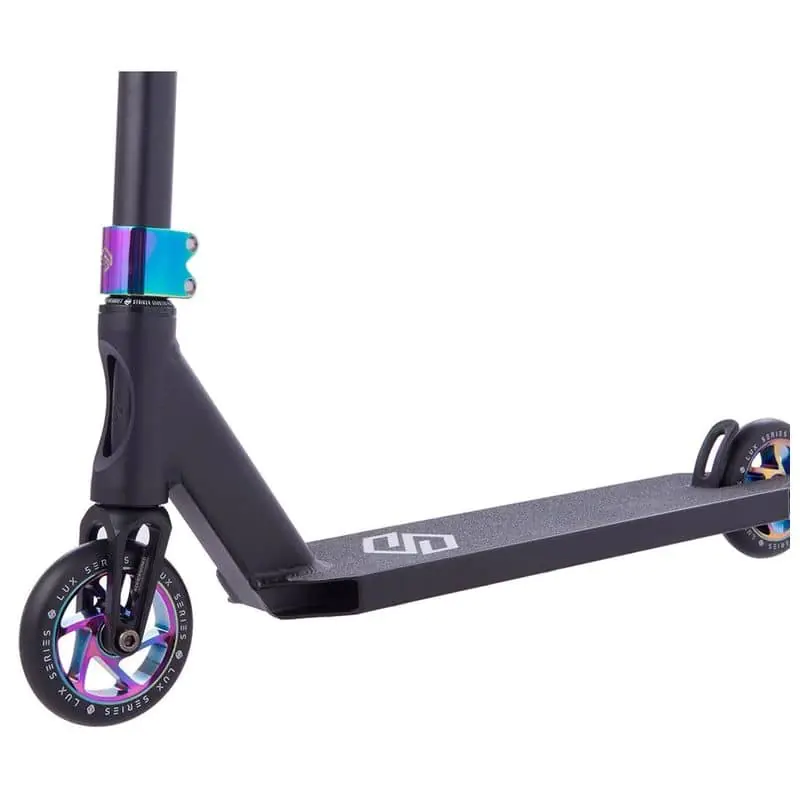 Der STRIKER Lux Youth in Neochrome ist der absolute Hingucker für junge Scooter-Fans! Mit 76 cm Gesamthöhe perfekt für Kids, die richtig coole Tricks lernen wollen. Das Deck aus 6061-T6 Aluminium ist super leicht aber mega stabil. Der Lenker aus Chromoly-Stahl hält auch harte Landungen aus. 110 mm Rollen mit ABEC-9 Kugellagern sorgen für smoothe Fahrten. Ob im Skatepark oder auf der Straße - dieser Scooter macht einfach Laune! Das Neochrome-Finish glänzt in allen Regenbogenfarben - da wirst du garantiert zum Star auf der Piste!