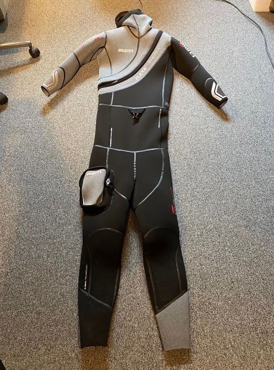 Hey, wenn du in gemäßigten Gewässern tauchen oder schnorcheln gehst, ist dieser Mares Neoprenanzug genau das Richtige! Mit 5mm Stärke hält er dich auch in kühlerem Wasser schön warm. Die integrierte Kapuze mit Luftablass-System verhindert dass dir Wasser ins Gesicht läuft - super praktisch! Der Klettverschluss am Kragen sitzt perfekt und hält dicht. Besonders cool: Die rutschfesten Bereiche an den Handgelenken für deinen Tauchcomputer - so verrutscht nichts beim Tauchen. Der Rückenreißverschluss macht das An- und Ausziehen super einfach. Am rechten Bein ist ein Ring zum Anbringen der Kapuze - alles durchdacht. Ob du jetzt Taucher, Schnorchler oder einfach nur Wassersport-Fan bist - dieser Anzug gibt dir die Freiheit länger im Wasser zu bleiben. Mares Qualität kennt man, die Verarbeitung ist top und das Material flexibel. Einfach anziehen und ab ins Wasser - dein zuverlässiger Begleiter für alle Unterwasser-Abenteuer!
