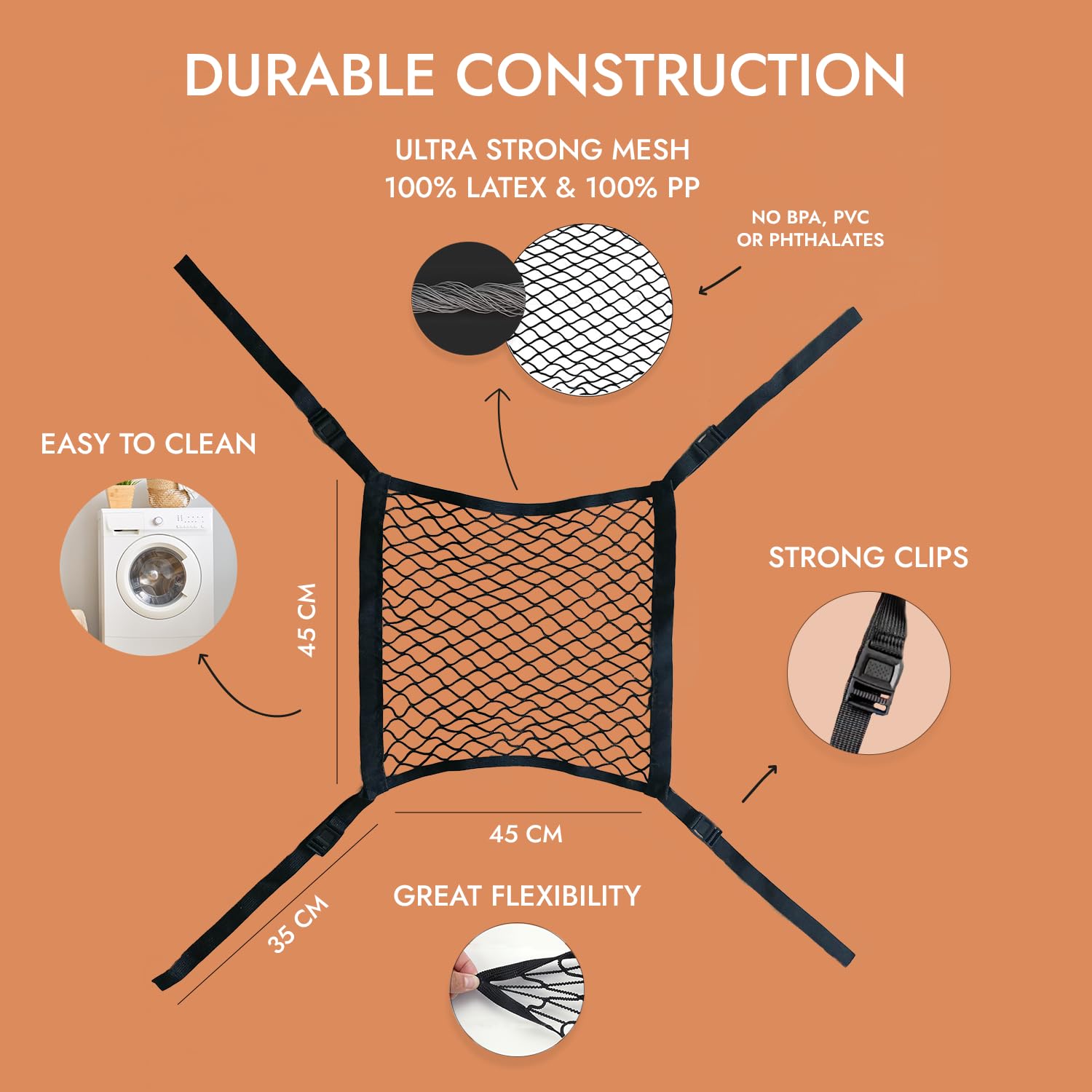 Sicherheit für dein Kind am Lernturm! Dieses Schutznetz sorgt für 4-seitigen Schutz und verhindert das Herunterfallen. Aus robustem Polyester-Material, besonders reißfest. Mit 110x45cm Größe passt es auf die meisten Lerntürme. Einfach zu installieren mit dem mitgelieferten Werkzeug. Reduziert Unfallrisiken während des Spielens oder Lernens. Das grobmaschige Design minimiert tote Winkel, sodass du dein Kind immer im Blick hast. Perfekt für Küche, Wohnzimmer oder Spielzimmer. Einfach anbringen und beruhigt sein!