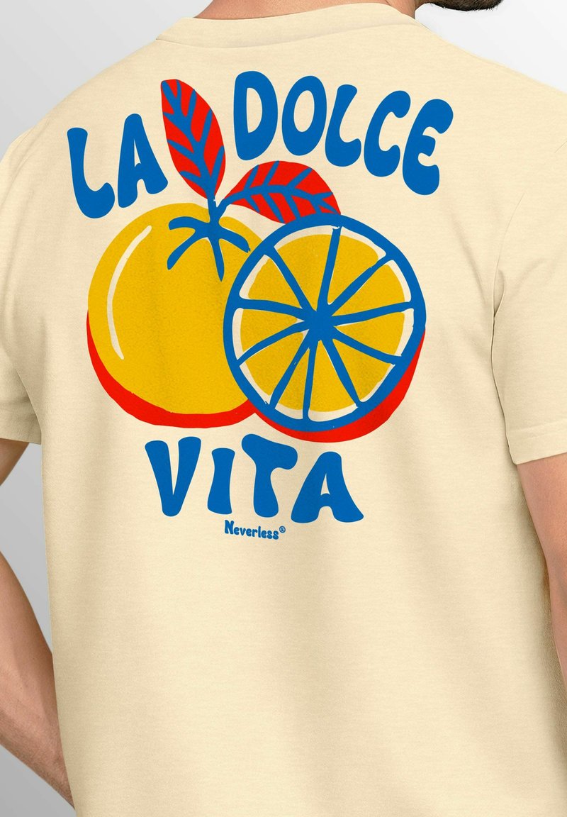 Dieses Neverless T-Shirt bringt italienisches Lebensgefühl in deine Garderobe! Mit dem coolen \La Dolce Vita\ Design featuring Hummer, Zitrone und Wein - einfach urlaubsmäßig und stylisch. Perfekt für den Sommer und alle die das gute Leben lieben.\n\nAus 100% weicher Baumwolle, super bequem zu tragen. Bis Größe XXL im Slim Fit, ab 3XL im Comfort Fit - also für jeden die passende Passform. Mit Rückenprint für extra Style von hinten.\n\nDer Druck ist hochwertig und hält auch nach vielen Waschgängen. Einfach bei 30°C waschen, auf links drehen und nicht auf den Druck bügeln - dann hast du lange Freude daran.\n\nPasst super zu Jeans, Shorts oder Jogginghosen. Ob für den Alltag, Dates oder Partys - mit diesem Shirt machst du immer eine gute Figur. Ein absolutes Must-Have für modebewusste Männer!