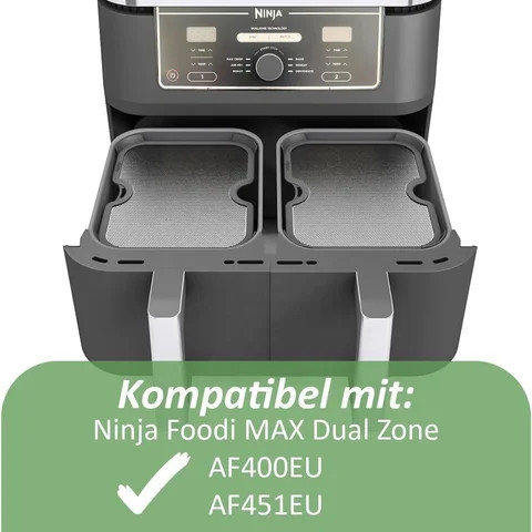 Schluss mit Fettspritzern in der Küche! Dieser hochwertige Spritzschutz aus Edelstahl passt perfekt auf deine Ninja Foodi Max Dual Zone Heißluftfritteuse (Modelle AF400EU & AF451EU). Das feinmaschige Design hält Fett und Lebensmittelspritzer zuverlässig auf, ohne die Luftzirkulation zu beeinträchtigen - dein Essen wird trotzdem perfekt knusprig! Der äußere Rahmen aus lebensmittelechtem Silikon mit integrierten Magneten sorgt für sicheren Halt am Frittierkorb. Einfache Installation - einfach aufsetzen und die Magnete halten alles fest. Leicht zu reinigen: Einfach in warmem Seifenwasser einweichen und abspülen. Wichtig: Enthält Magnete, daher nicht spülmaschinengeeignet. Deine Heizstäbe bleiben sauber und deine Küche blitzblank. Ein absolutes Must-Have für jeden Ninja Foodi Besitzer!