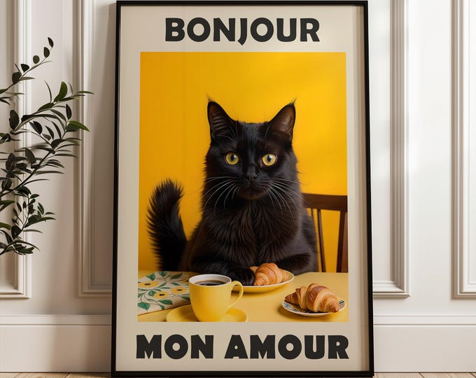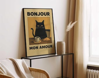Le Chat Noir Poster 21x30cm - Schwarze Katze Bonjour Mon Amour Wanddekoration