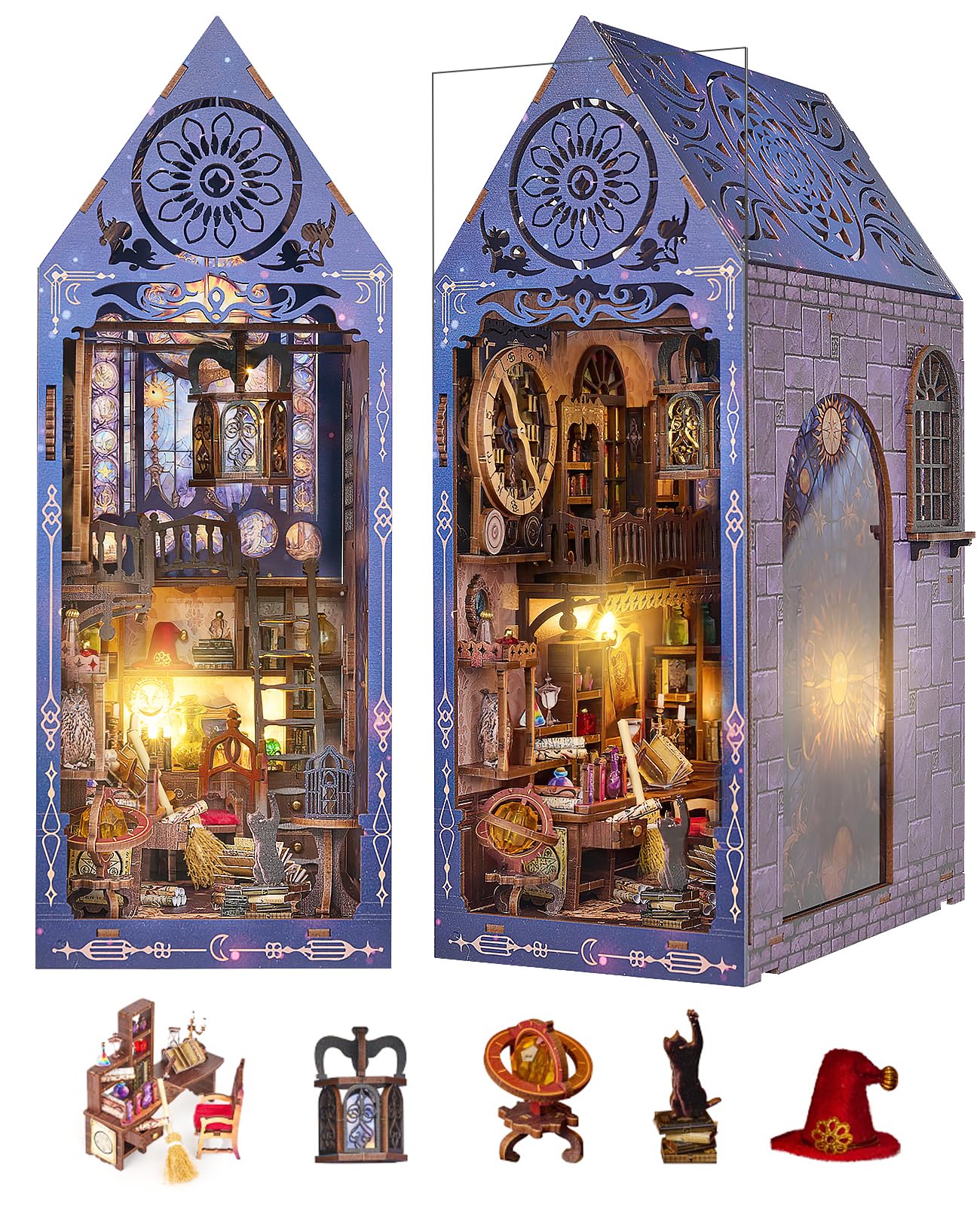 Lycidae Magic Library Book Nook Kit - DIY Miniatur Haus Mit LED-Beleuchtung