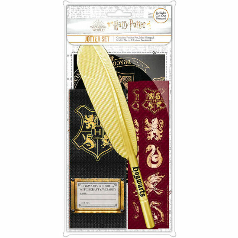 Abrakadabra! Dieses Harry Potter Schreibset ist pure Magie! Der Kugelschreiber sieht aus wie ein echter Zauberstab - fühle dich wie in Hogwarts beim Schreiben! Dazu ein hochwertiger Notizblock im DIN A5 Format mit Hogwarts-Emblem. Perfekt für Hausaufgaben, Notizen oder deine magischen Ideen! Super Geschenk für Harry Potter Fans jeden Alters - ob Kind oder Erwachsener. Verwandele deinen Schreibtisch in einen Zauberer-Arbeitsplatz! Der Kuli liegt super in der Hand und schreibt smooth. Ideal für Schule, Büro oder einfach nur zum Sammeln. Hol dir ein Stück Zauberer-Alltag nach Hause! Einfach bestellen und in die magische Welt von Harry Potter eintauchen!