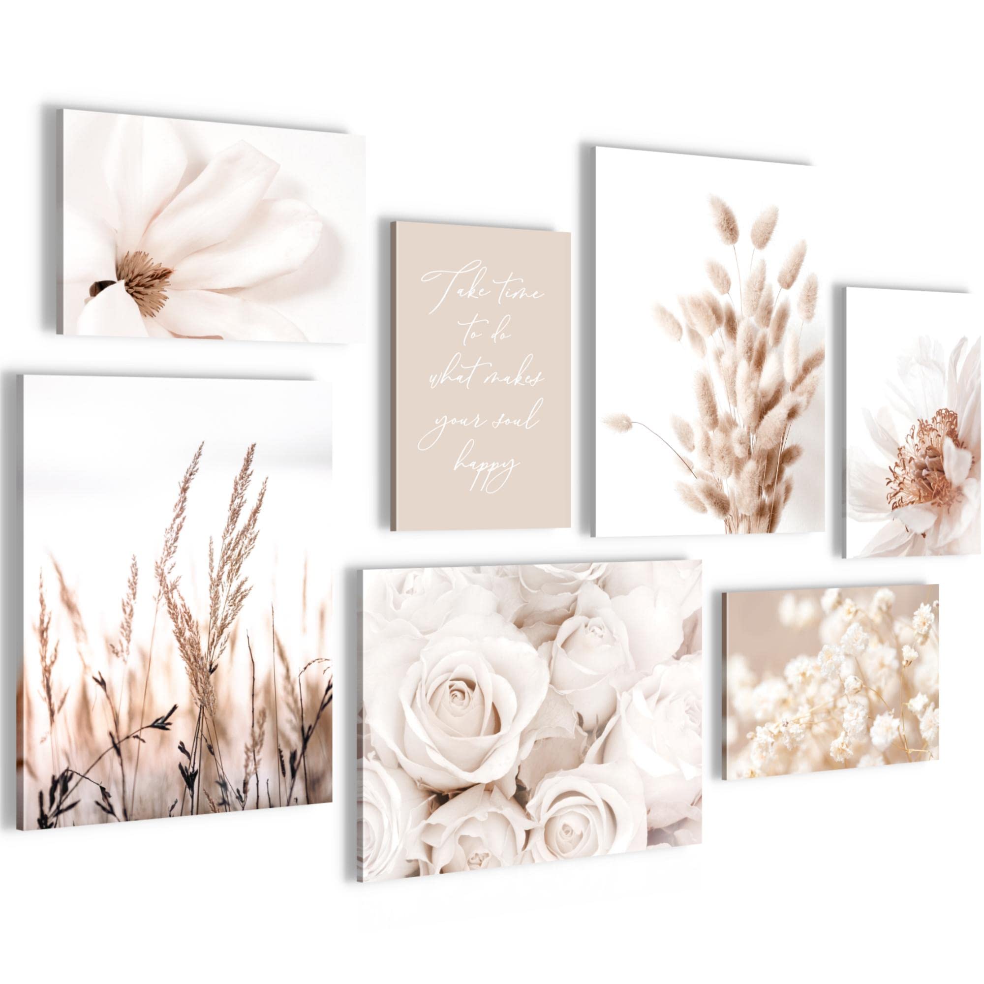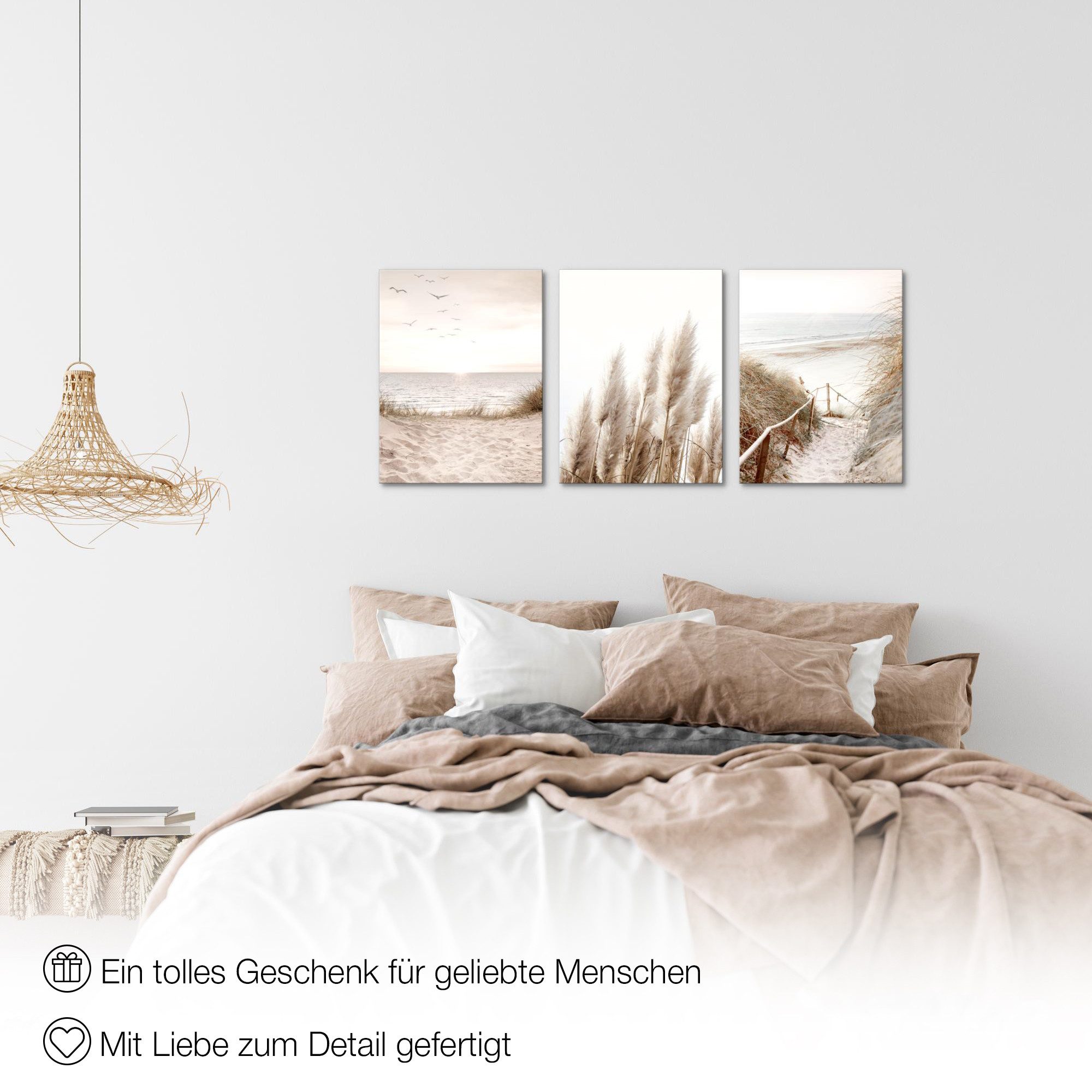 Novart Wandbilder Set Boho - 3 Bilder Beige, Komplett Aufhängfertig