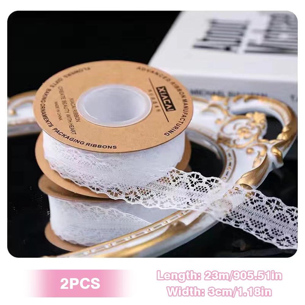 Nurila Spitzenband Set 30m Weiß - 40mm Breite Für Hochzeitsdeko & Basteln