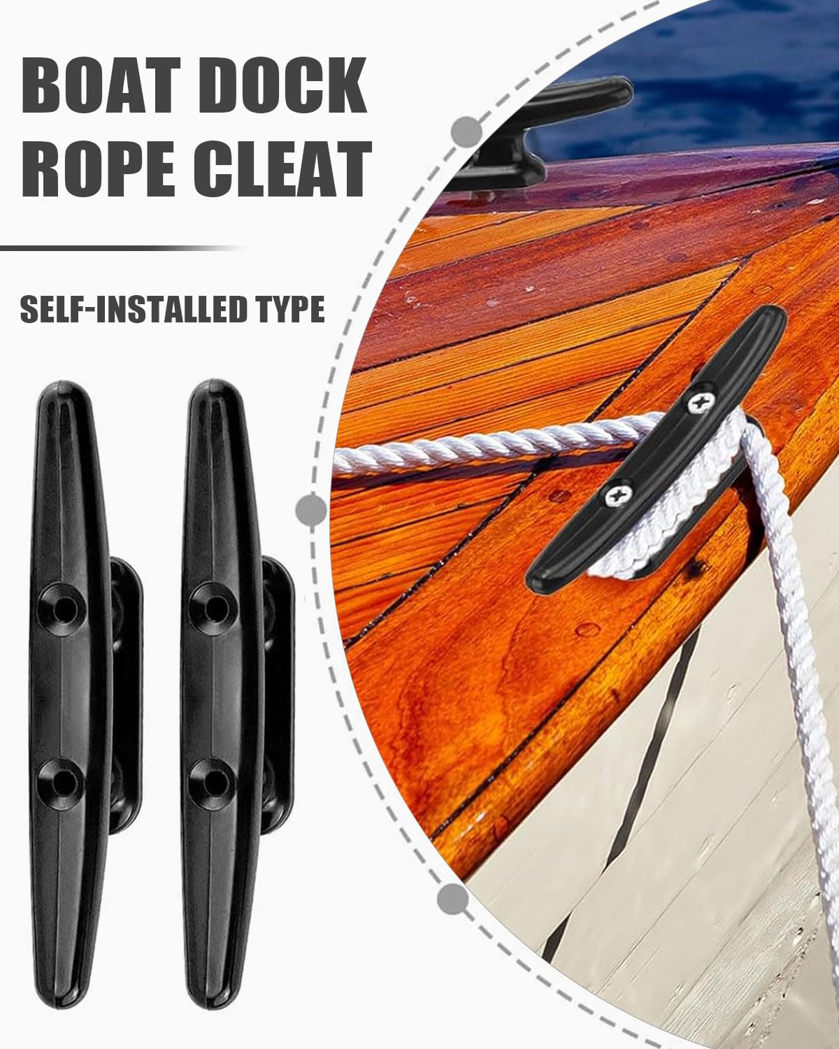 Alles fest im Griff! Diese robusten Festmacherklampen von FUGLUS sind die perfekten Helfer für dein Boot oder Kajak. Aus hochwertigem, schlagfestem Nylon gefertigt - das bedeutet: absolut rostfrei, salzwasserbeständig und super langlebig. Mit 153 mm Schienengröße und 30 mm Höhe sind sie ideal für die meisten Boote. Die Montage ist kinderleicht: einfach mit zwei Schrauben befestigen und schon hält die Klampe deine Seile und Taue sicher fest. Selbst bei starkem Seegang oder unruhiger See gibt die Klampe keinen Millimeter nach. Die rutschfeste Befestigung sorgt dafür, dass nichts verrutscht. Perfekt für Segler, Kajakfahrer und alle, die ihr Boot sicher vertäuen wollen. Mit Lochabstand von 6 mm und 72 mm Länge unten passt sie zu den meisten Standardbefestigungen. Hol dir das 2er-Set und sei doppelt abgesichert!