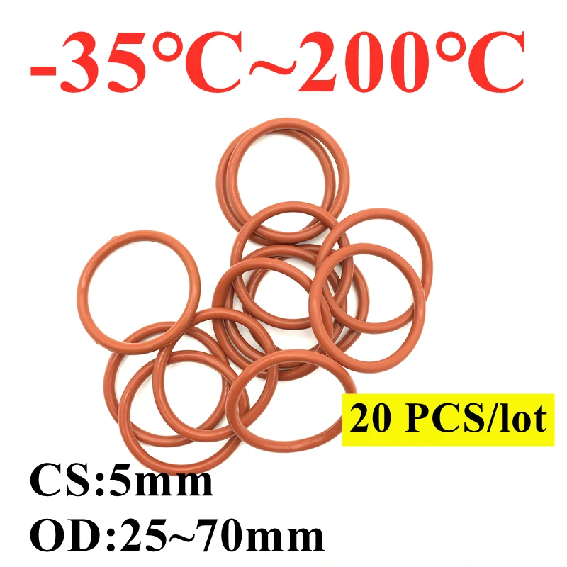 20 Stück VMQ Silikon O-Ring 30x20x5mm - Rote Dichtungen Für Verschiedene Anwendungen