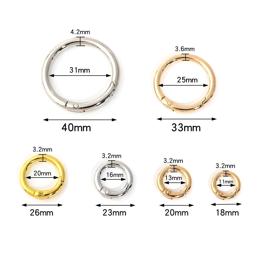 8 Stück Karabinerhaken Rund 25mm - O-Ring Schlüsselringe Aus Zinklegierung Gold