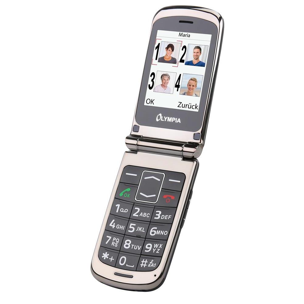 Das perfekte Handy für die Generation 50+! Das OLYMPIA Luna Gold Klapphandy hat extra große, beleuchtete Tasten und eine praktische Notruftaste auf der Rückseite. Mit 2,4 Zoll Display, Freisprechfunktion und Telefonbuch für 300 Kontakte. Simlock-frei für alle deutschen Netze, mit Bluetooth und Kamera. Inklusive Ladestation und Akku für bis zu 350 Stunden Bereitschaft. Einfache Bedienung, laute Klingeltöne - alles was ein gutes Senioren-Handy braucht!