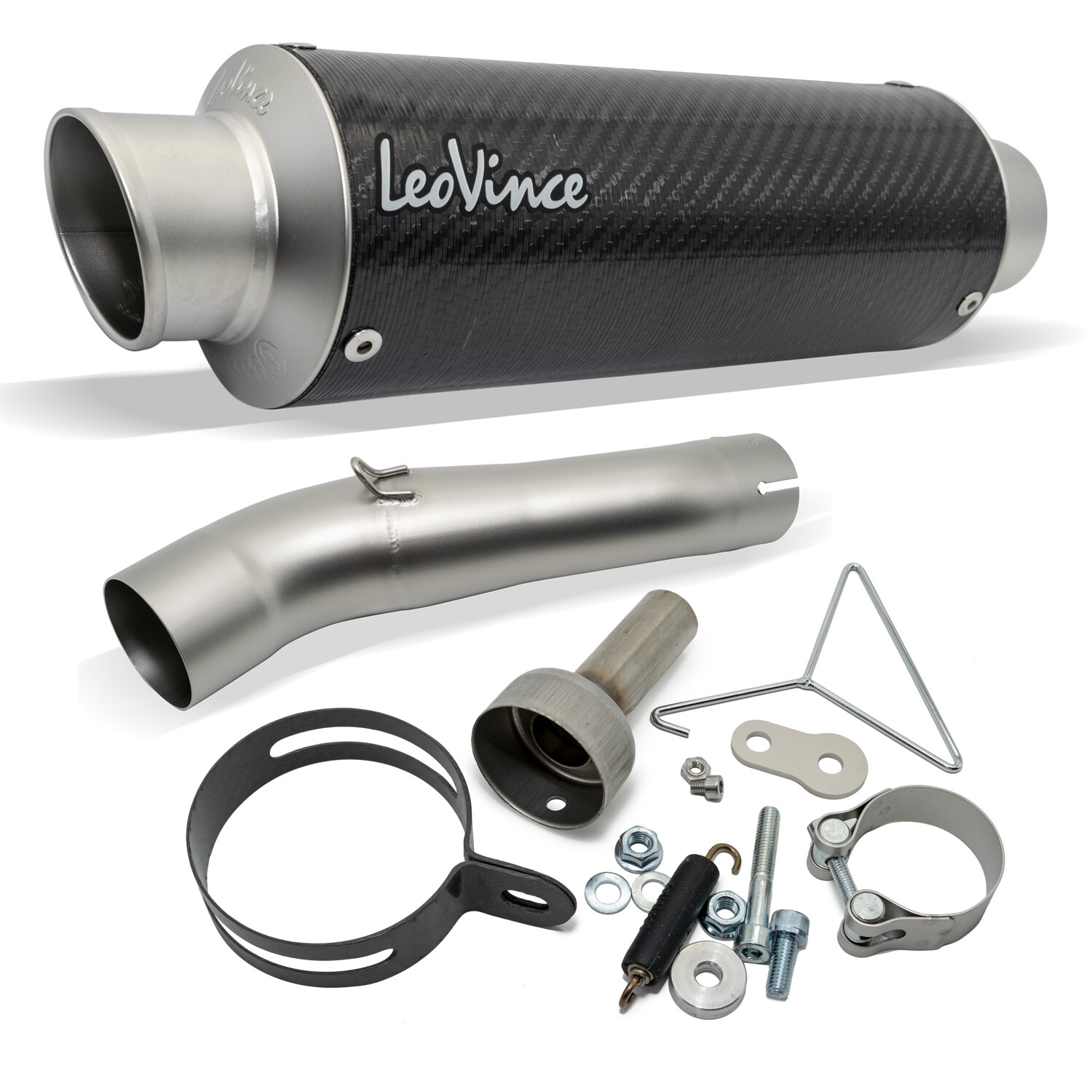Verpasse deiner Kawasaki Z 900 den ultimativen Rennsport-Sound! Dieser LeoVince SLIP-ON SBK LV-10 Endschalldämpfer aus Carbon mit Edelstahl-Kappe wurde in Zusammenarbeit mit Moto2- und Moto3-Rennteams entwickelt. Leichtgewichtiger Carbon-Auspuff mit unverwechselbarem LeoVince-Sound und sportlicher Optik. Komplett mit ECE-Zulassung - also absolut straßenzugelassen und legal. Der originale Katalysator bleibt erhalten, sodass du keine Probleme mit der AU haben wirst. Einfache Montage als Slip-On-Version, alles Notwendige ist im Lieferumfang enthalten. Das Edelstahlnetz an der Endkappe verleiht dem Auspuff einen aggressiven Rennsport-Look. Von italienischer Qualitätshandarbeit - LeoVince gehört zu den bekanntesten und beliebtesten Auspuff-Herstellern im Motorradbereich. Perfektes Preis-Leistungs-Verhältnis für alle, die ihrem Bike mehr Sound und Style verpassen wollen, ohne Kompromisse bei Qualität und Legalität einzugehen!