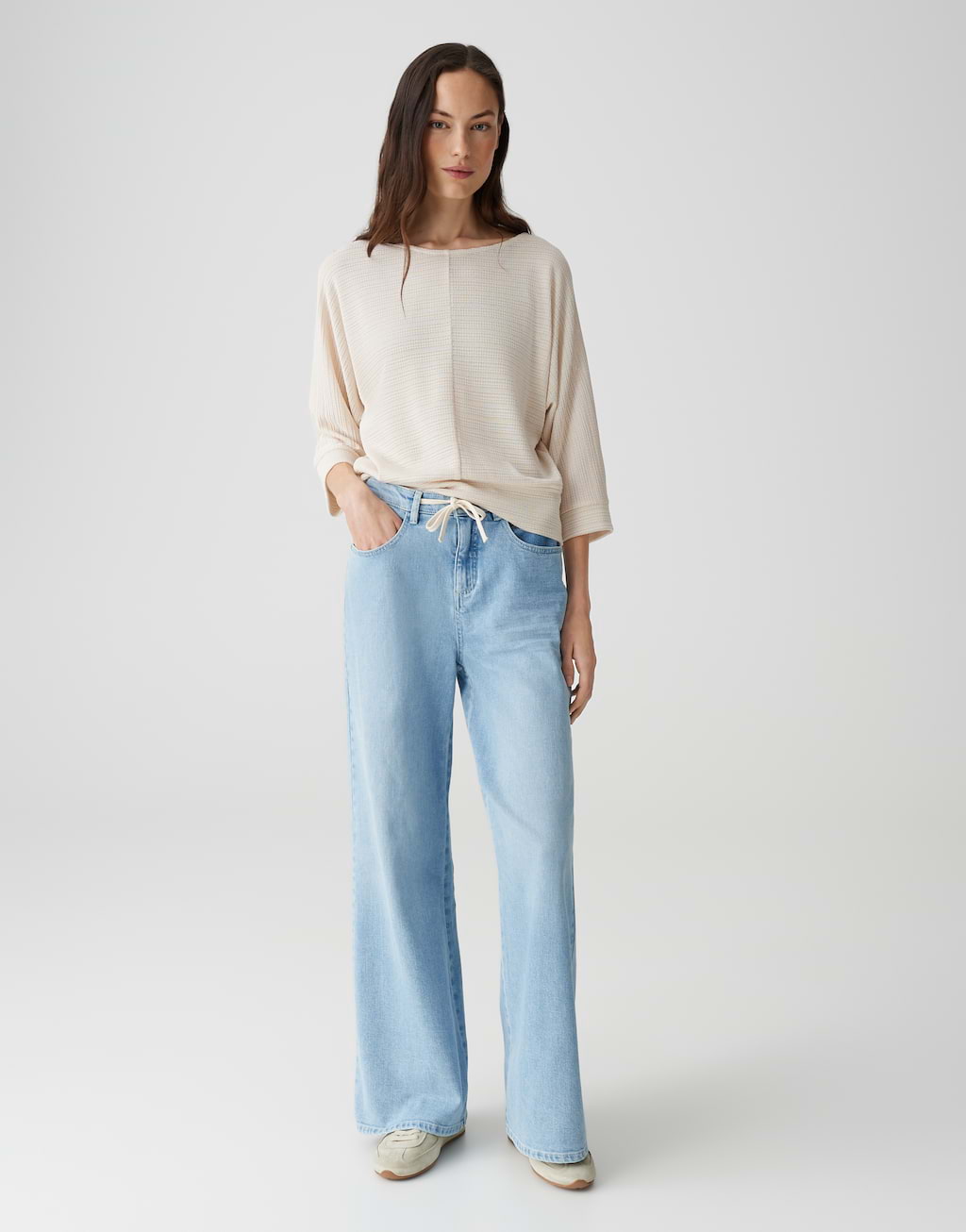OPUS Damen 3/4 Arm Shirt - Loose Fit Viskose Jersey Mit Rippstruktur