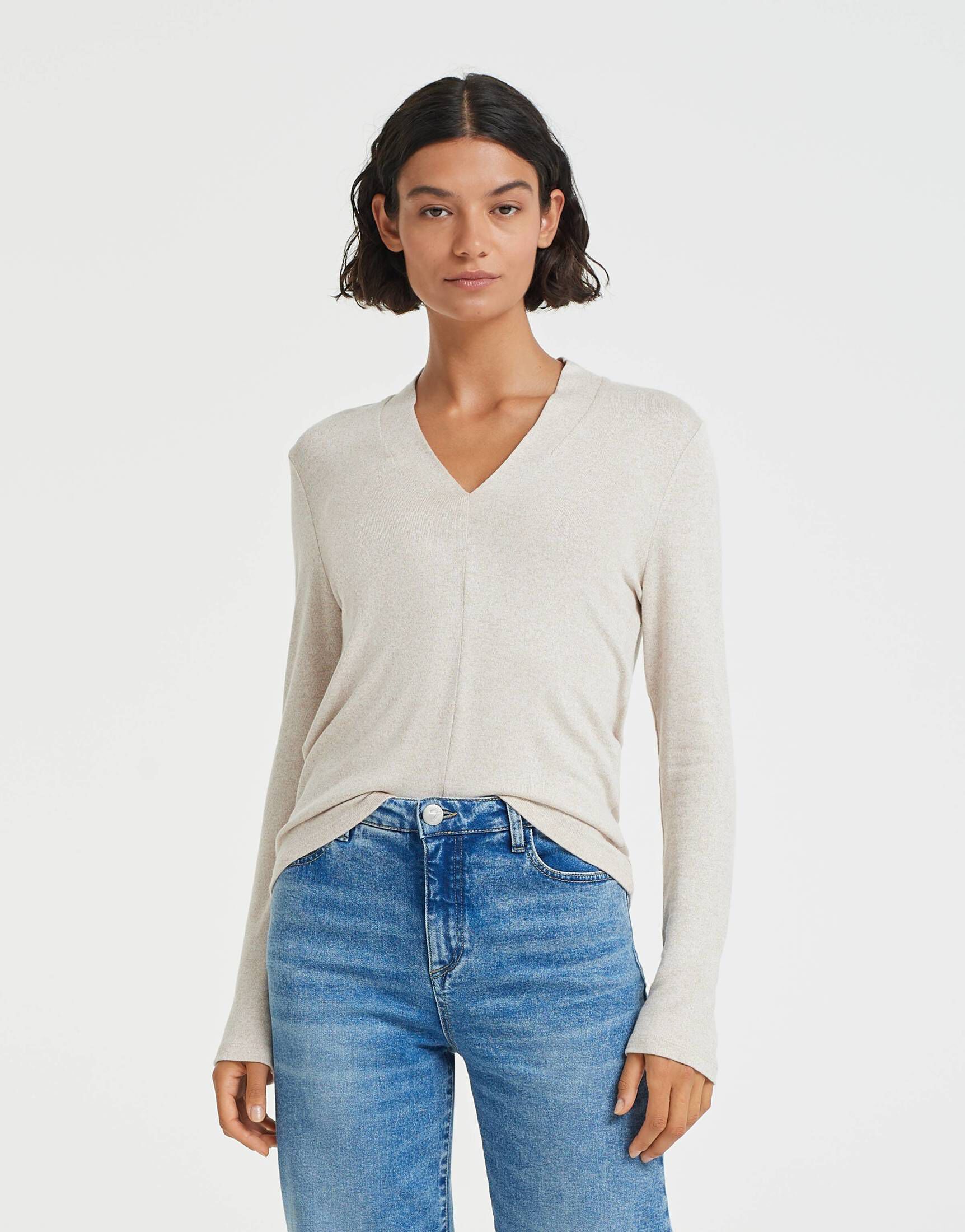 Boah, dieses Damen-Shirt ist einfach mega bequem! Aus weichem Viskose-Mix gefertigt - fühlt sich an wie ein zweite Haut. Die dezente Rippstruktur gibt dem Shirt eine richtig edle Optik, ohne aufdringlich zu wirken. Der lockere Schnitt ist super für alle, die es lässig mögen - nicht zu eng, nicht zu weit. Der überschnittene 3/4 Arm und der V-Ausschnitt sorgen für einen modernen, zeitlosen Look. Perfekt für den Alltag - ob zum Jeans, Rock oder Leggings. Das Shirt ist übrigens auch super für wärmere Tage geeignet, da das Material angenehm luftig ist. In Größe 36 passt es bei einer Körpergröße von 177 cm - also eher normal ausfallend. Einfach mal was Anderes als die Standard-T-Shirts! Macht sich auch super unter einer Jacke oder einem Blazer. Die Qualität ist top - waschbar ohne dass es seine Form verliert. Ein echter Allrounder für deinen Kleiderschrank!