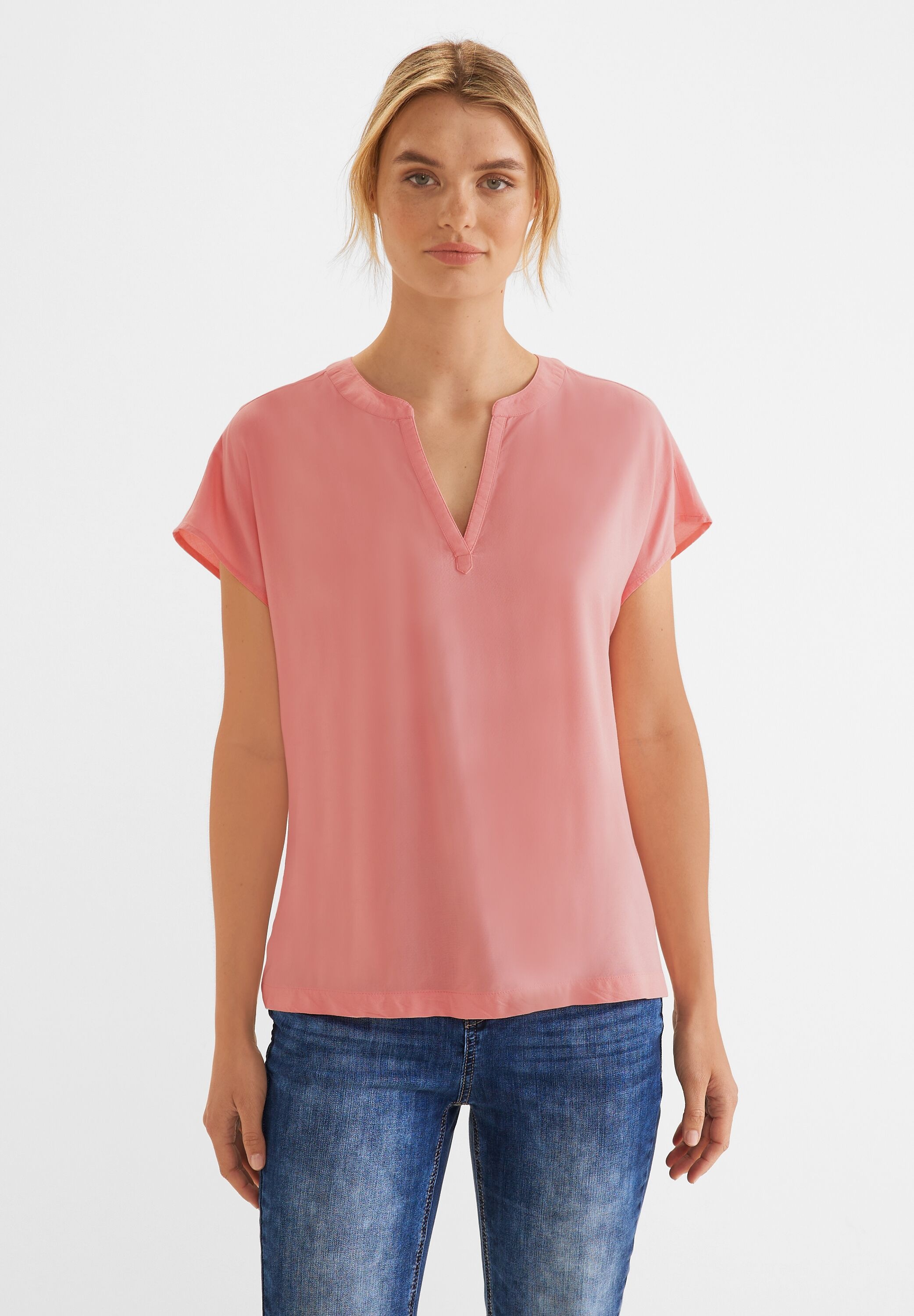 OPUS Damen Langarmbluse FRERA - Material Mix Mit V-Ausschnitt