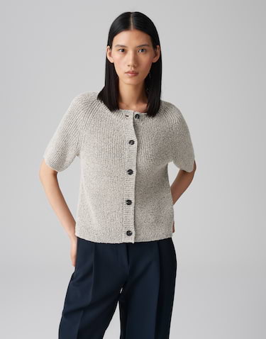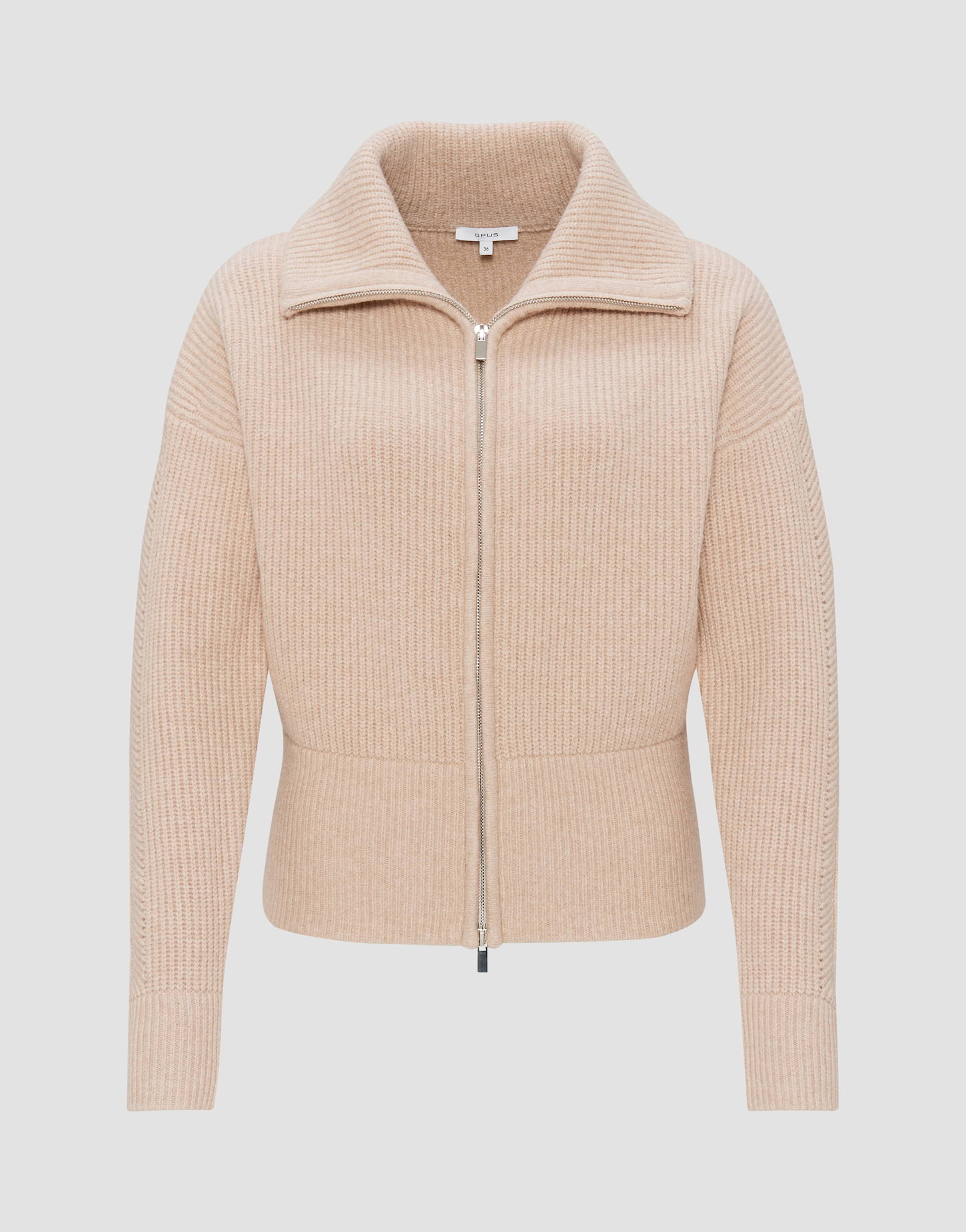 OPUS Damen Strickjacke Slim Fit - Nachhaltiger Baumwollmix Rippstrick