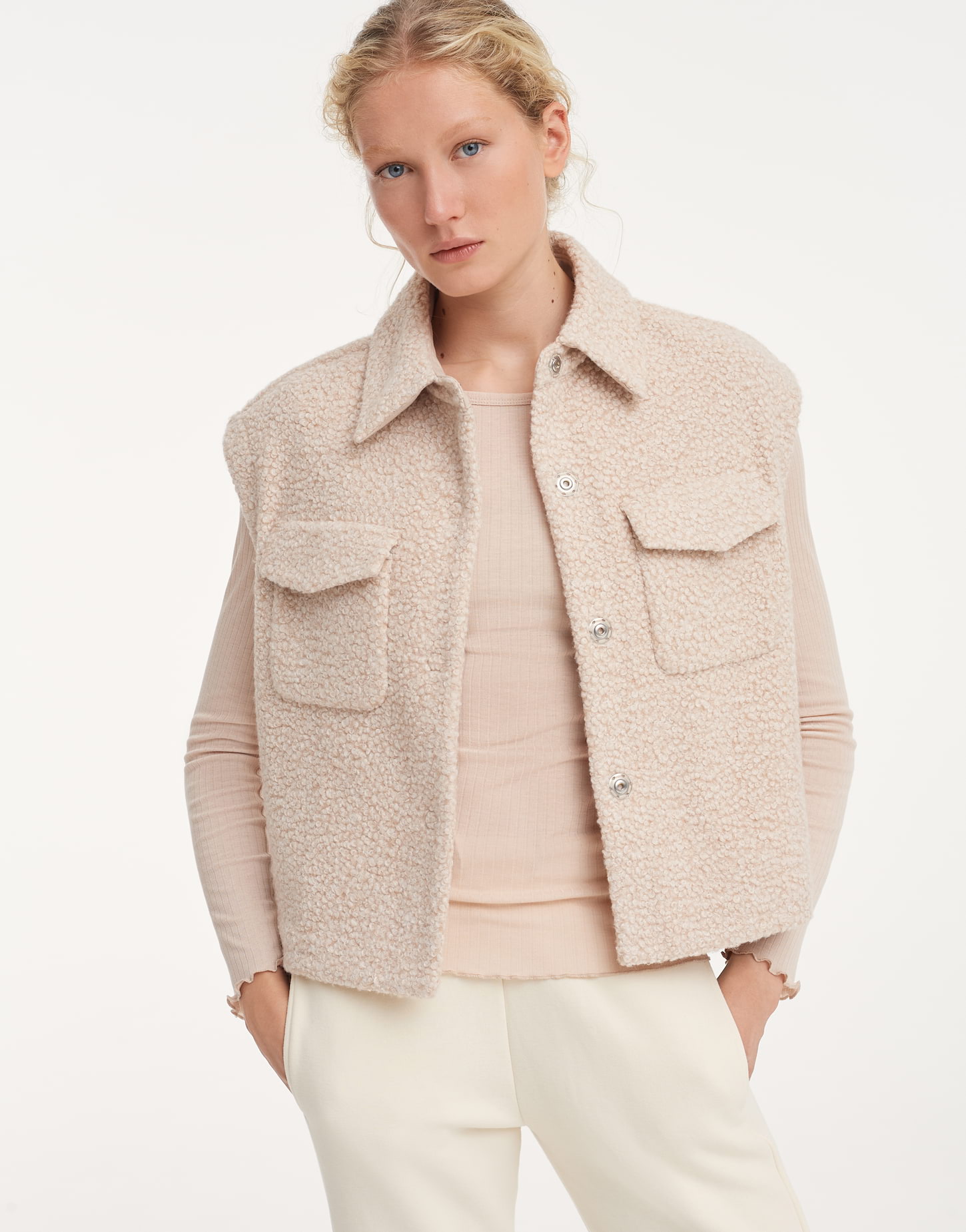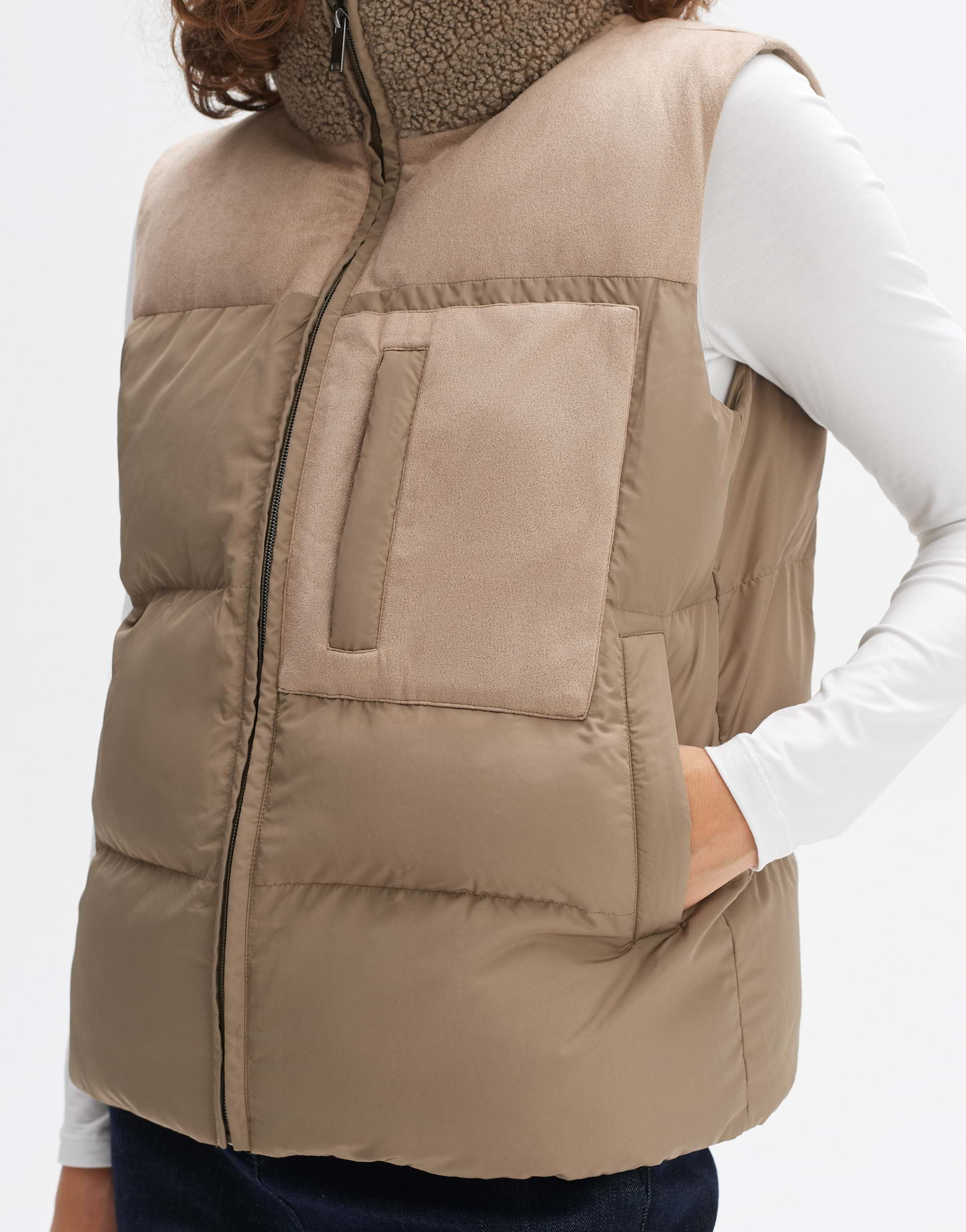 Die OPUS WAHIDA Weste in weicher Felloptik ist einfach nur kuschelig! Aus hochwertigem Teddyfell-Material, super weich und angenehm zu tragen. Im regular Fit sitzt sie perfekt und lässt sich easy kombinieren - ob über Pullovern, Blusen oder T-Shirts. Perfekt für die Übergangszeit oder milde Wintertage. Zeitloses Design, das nie aus der Mode kommt. Ein Must-have für deinen Kleiderschrank, wenn du es casual und gemütlich magst. OPUS steht für all day casual - und das merkst du!
