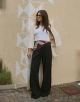 Hey Ladies, sucht ihr eine Hose die sowohl professionell aussieht als auch mega bequem ist? Diese OPUS Wide Leg Pants mit den feinen Nadelstreifen sind genau das Richtige für den Business-Alltag! Der moderne Look ist total stylisch und souverän - perfekt fürs Büro oder wichtige Termine. Das beste: Der konfektionierte Komfortbund im Rückteil garantiert einen entspannten Sitz den ganzen Tag lang. Kein nerviges Zwickern mehr! Die Passform ist einfach traumhaft - Mid Rise und weiter, gerader Beinverlauf sorgen für maximalen Tragekomfort. Und der Wide Leg und Long Fit machen die Hose super vielseitig kombinierbar. Ob mit Blazer für den Business-Look oder casual mit einem einfachen T-Shirt - hier passt einfach alles! Hergestellt aus hochwertigem Webware-Material das nicht nur langlebig ist, sondern sich auch super angenehm auf der Haut anfühlt. OPUS steht für stilvolle Alltagsmode die Casual Chic mit femininem Stil vereint. Und das beste: Nachhaltigkeit ist ein fester Bestandteil der Markenphilosophie - gut für dich und die Umwelt! Eine eure Basic die in keinem Kleiderschrank fehlen sollte. Einfach anziehen und sich wohlfühlen - mehr braucht es nicht für den perfekten Arbeitstag!